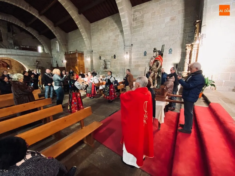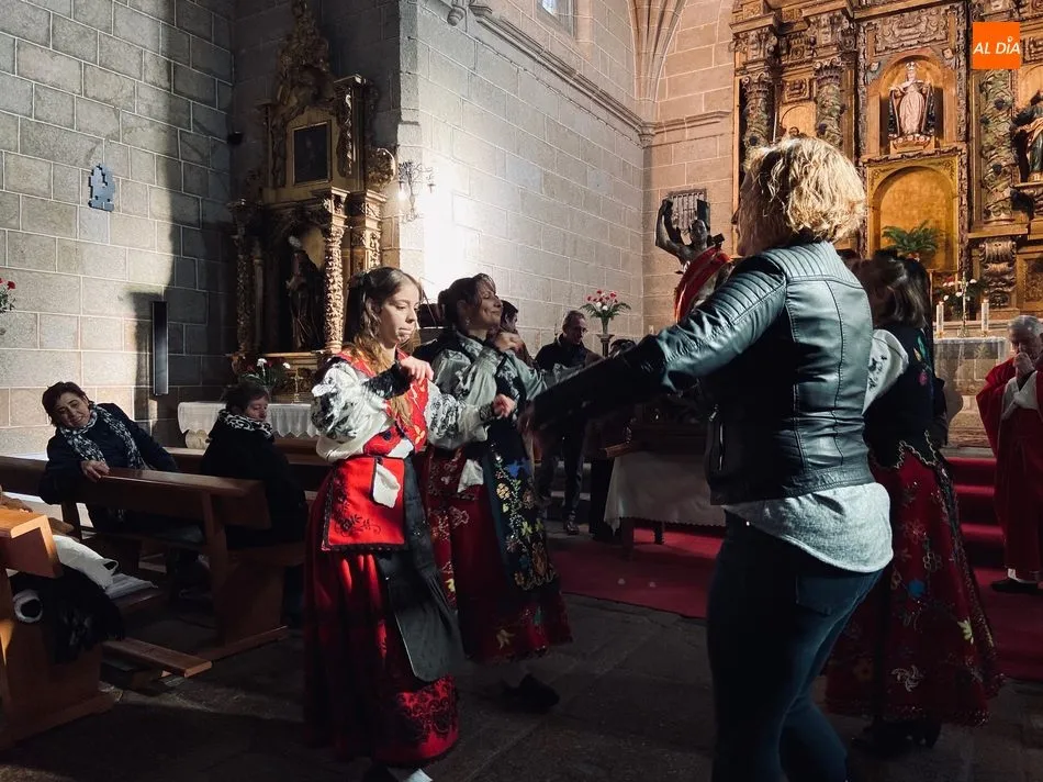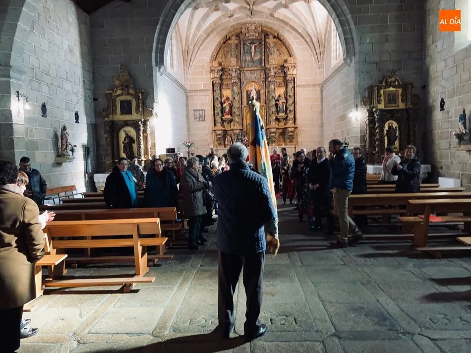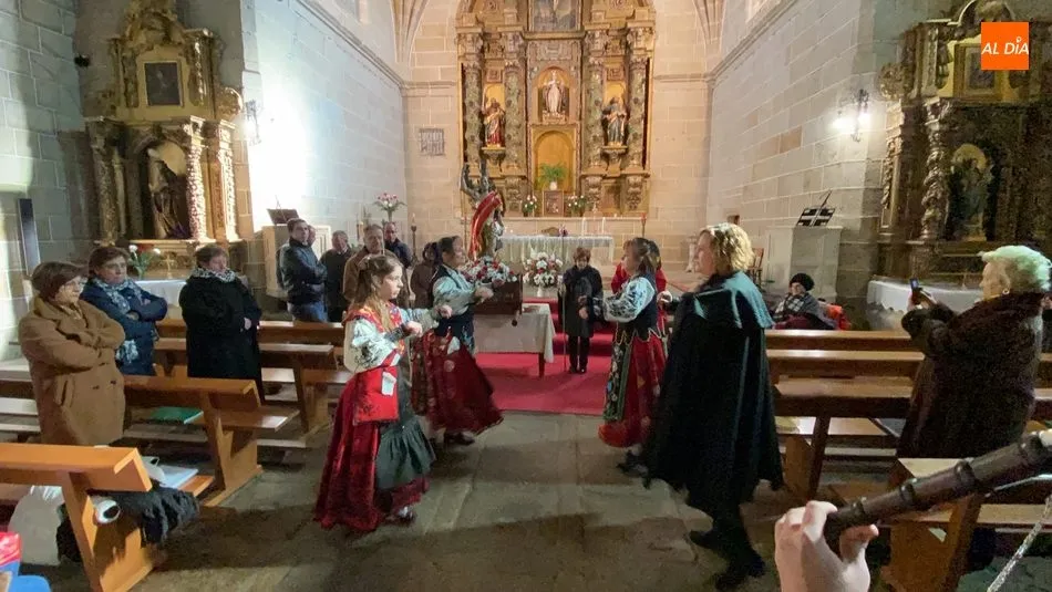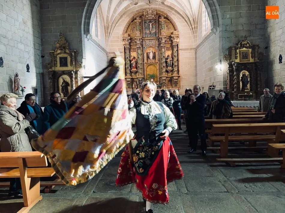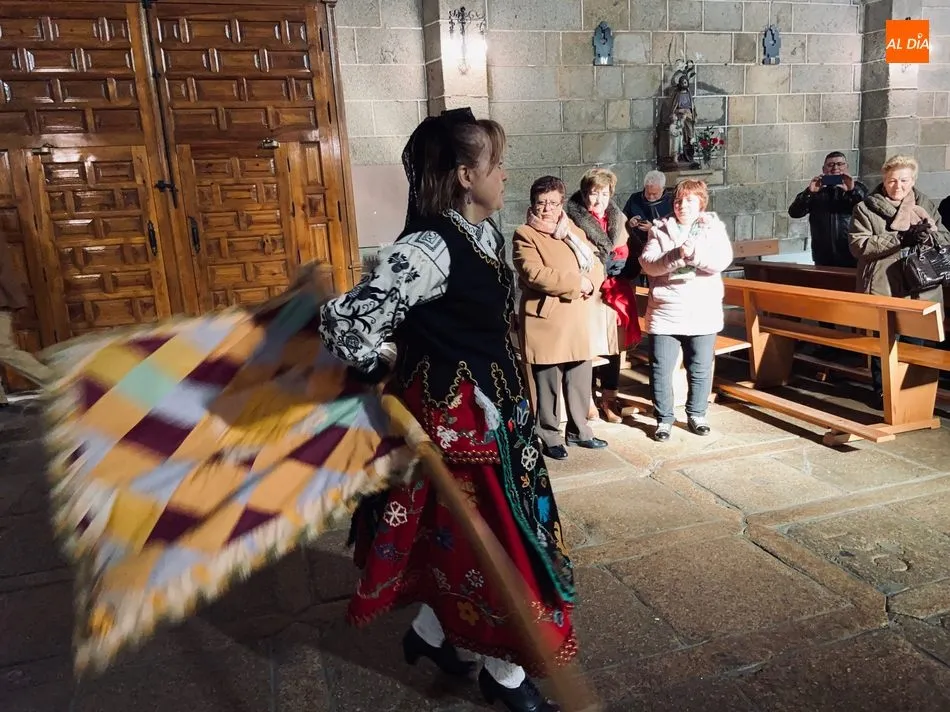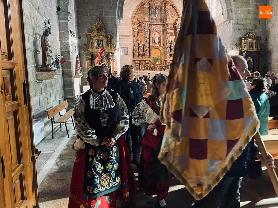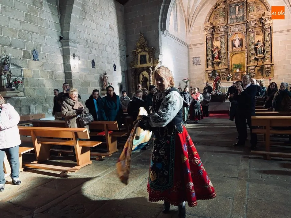 La homilía estuvo amenizada por los sones de la gaita y el tamboril de Albert Calderón, llegado desde Guadramiro, que también tocó durante la procesión que se realizó en el interior del templo, acto que daría paso a la actuación de un grupo de charras locales y al baile de la bandera, para concluir con un convite ofrecido por el Ayuntamiento.