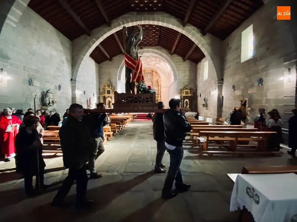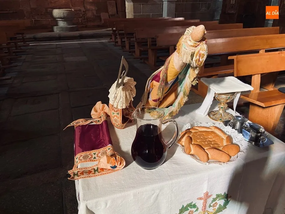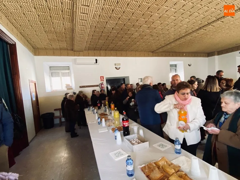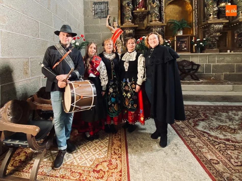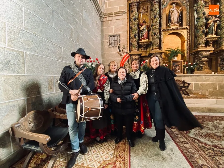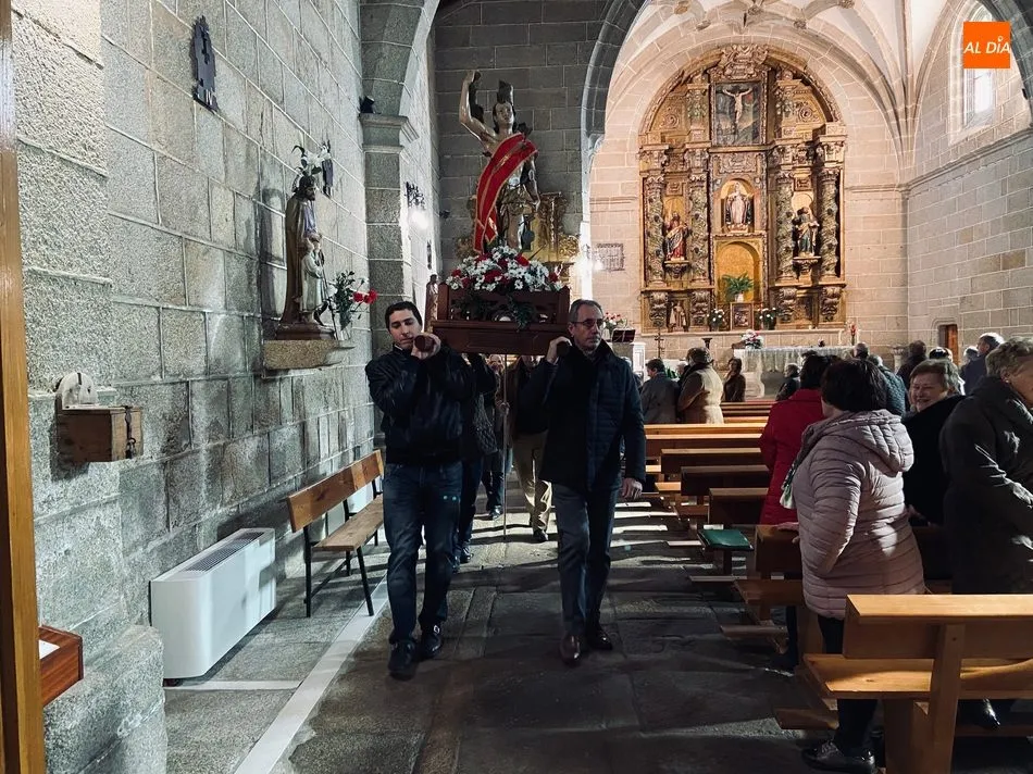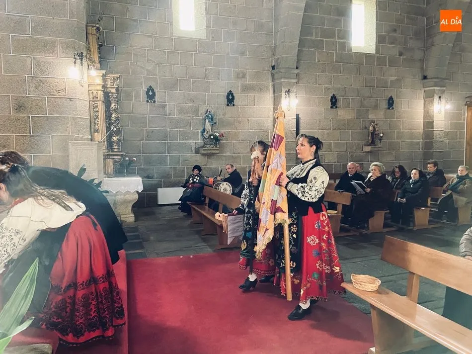 La homilía estuvo amenizada por los sones de la gaita y el tamboril de Albert Calderón, llegado desde Guadramiro, que también tocó durante la procesión que se realizó en el interior del templo, acto que daría paso a la actuación de un grupo de charras locales y al baile de la bandera, para concluir con un convite ofrecido por el Ayuntamiento.