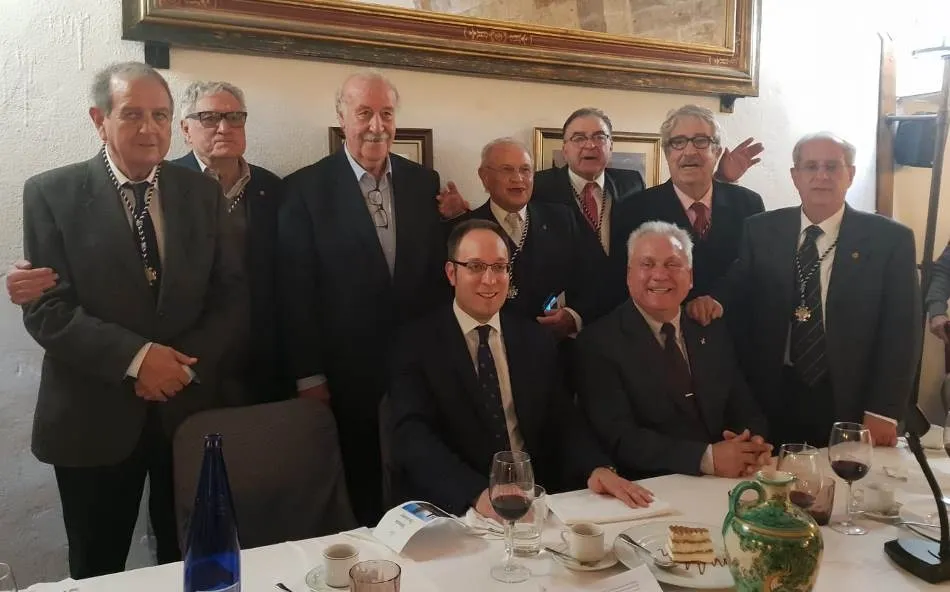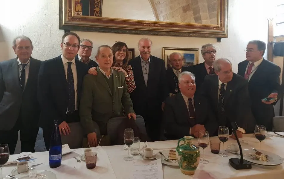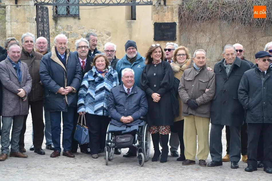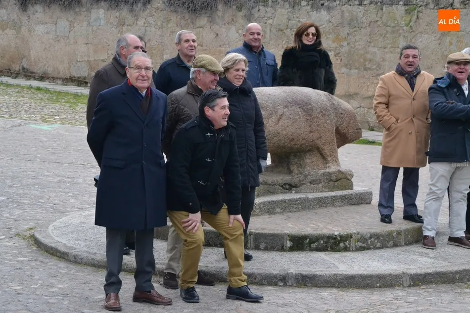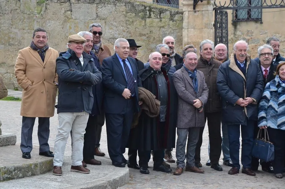 Este año, la comida de la Peña Gutenberg tuvo lugar en las dependencias del Parador de Turismo de Enrique II de Trastámara. Antes de sentarse a comer, los asistentes a la comida se sacaron una gran foto de familia de recuerdo junto al verraco de la Plazuela del Castillo, con el Parador de fondo.