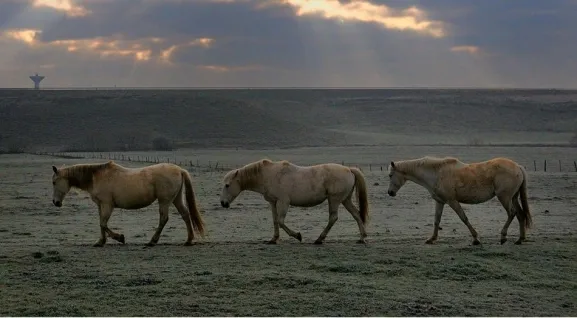 ?Estos caballos blancos, alineados, se ofrecen en la helada al fulgor de la luz. La muerte del invierno es fría. Pero ellos se sostienen en el existir, en la vida, gracias a ...? (José Luis Puerto) / Foto de Carlos Santiago