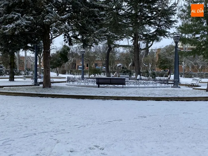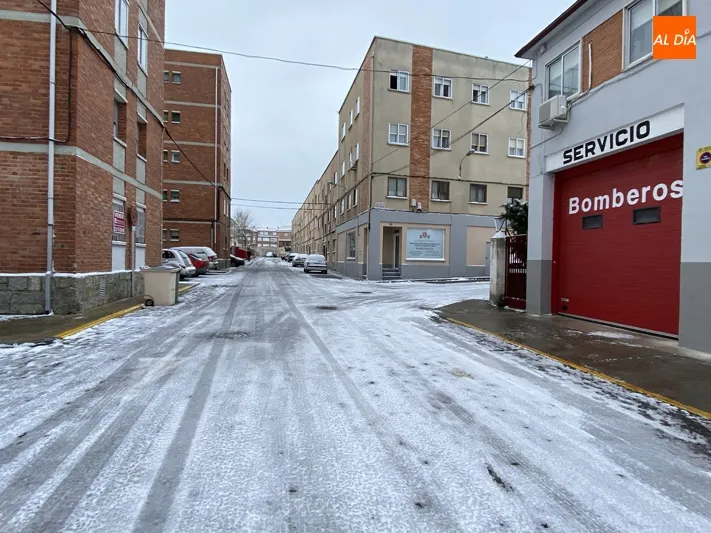 La totalidad de los trabajadores municipales participan desde las siete de la mañana en el operativo especial que el Ayuntamiento de Peñaranda ha puesto en marcha con motivo de la nevada caída durante la noche y la madrugada, a la que ha seguido una importante helada.