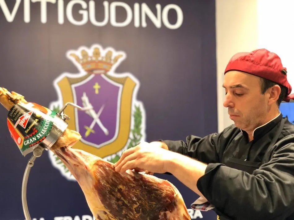 En este primer día, Jamones Pepiño ha realizado una degustación de jamón y que ha obtenido un gran éxito entre el público asistente.