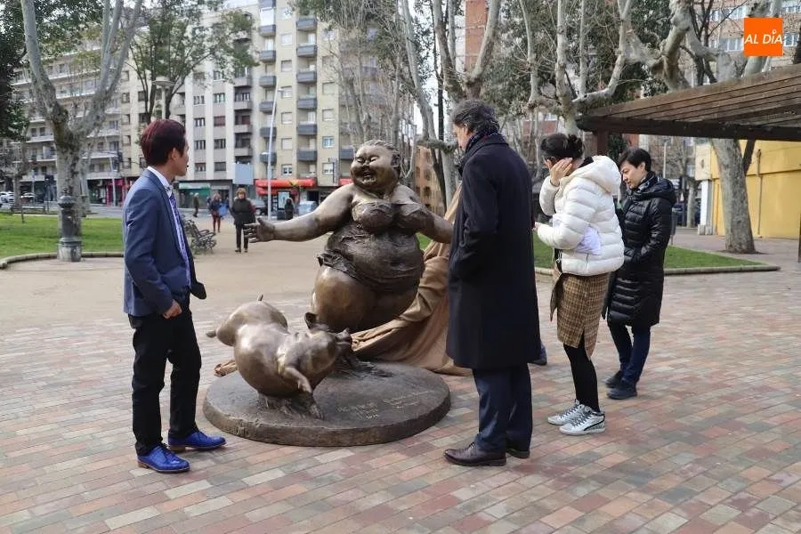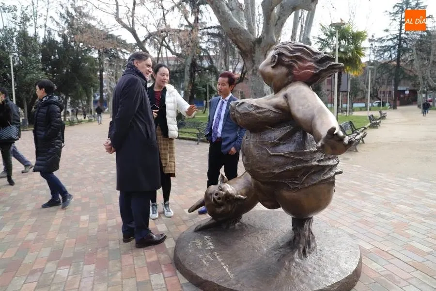 arlos García Carbayo, alcalde de Salamanca, y el escultor Xu Hongfei, que se encuentra en la ciudad con motivo de la celebración del Año Nuevo Chino, han presentado en el parque de la Alamedilla la escultura ?Bailando de felicidad en España?, que ha sido donada a la ciudad por el artista chino.