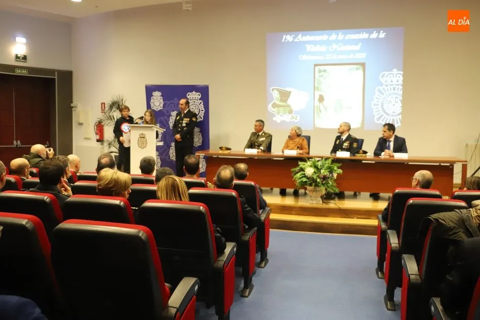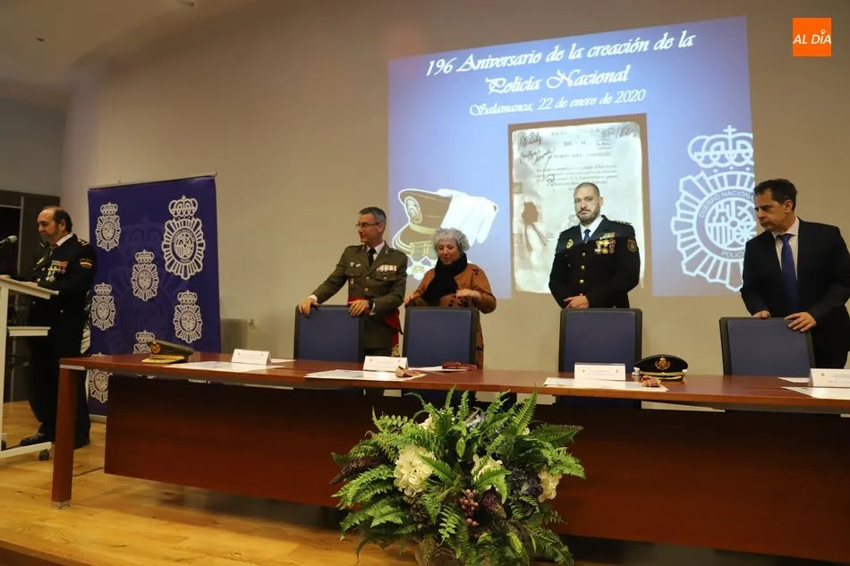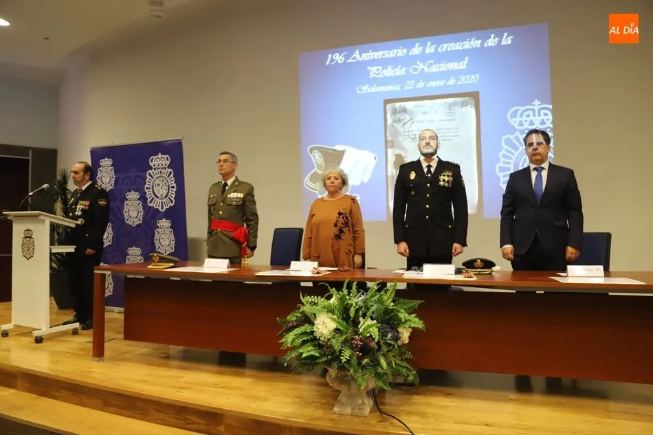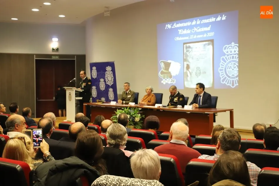La subdelegada del Gobierno en Salamanca, Encarnación Pérez Álvarez, ha presidido esta mañana, en el Salón de Actos de la Delegación Provincial de Economía y Hacienda, el acto conmemorativo del 196 aniversario de la creación del Cuerpo Nacional de Policía.