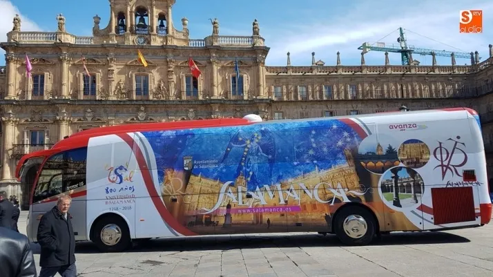 En el caso del transporte por carretera, y a semejanza de lo que ya se hizo con motivo del VIII Centenario de la Universidad de Salamanca, dos autobuses que cubren la línea Salamanca-Madrid serán ?vestidos? con sendos vinilos con imágenes de atractivos turísticos salmantinos. Cerca de un millón de viajeros recorren esa ruta cada año. Muchos de ellos tendrán la oportunidad de ver el espectáculo rodante que representan los grandes iconos de la capital salmantina durante un viaje que une ambas ciudades en dos horas y media.