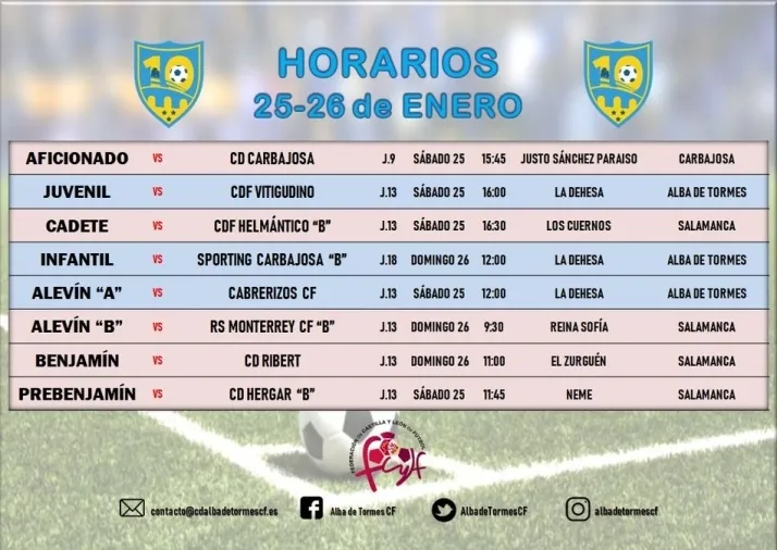 Alba de Tormes CF. Partidos del fin de semana (25-26 de enero)