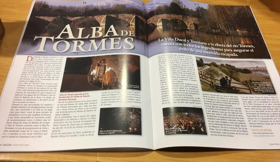 Además de asistir a Naturcyl, Intur y ahora Fitur, el Ayuntamiento de Alba de Tormes ha decidido apostar de manera firme por la promoción de la villa ducal en dos revistas especializadas en el sector turístico a nivel nacional: ?Lo Mejor de las Autonomías? y ?Aire Libre?.