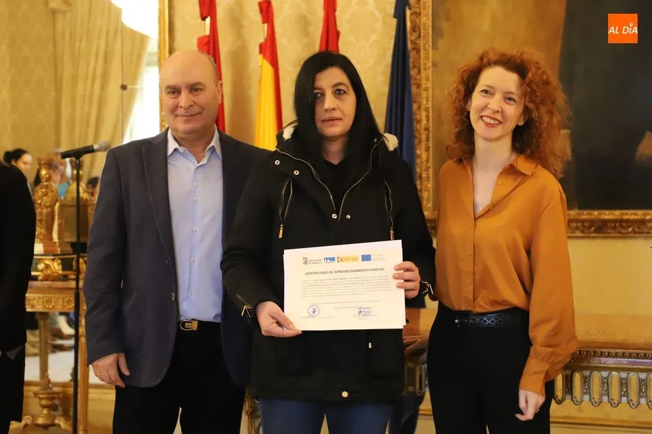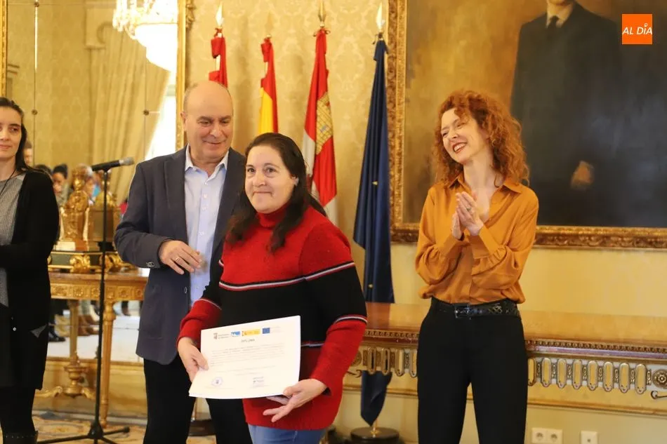 La concejala de Familia e Igualdad de Oportunidades del Ayuntamiento de Salamanca, Ana Suárez Otero, ha entregado esta mañana los diplomas del Certificado de Profesionalidad ?Limpieza de superficies y mobiliario en edificios y locales?. El curso, que ha sido completado por once personas y consta de 275 horas, forma parte del proyecto POR + Salamanca y está cofinanciado por el Fondo Social Europeo y el Ayuntamiento de Salamanca.