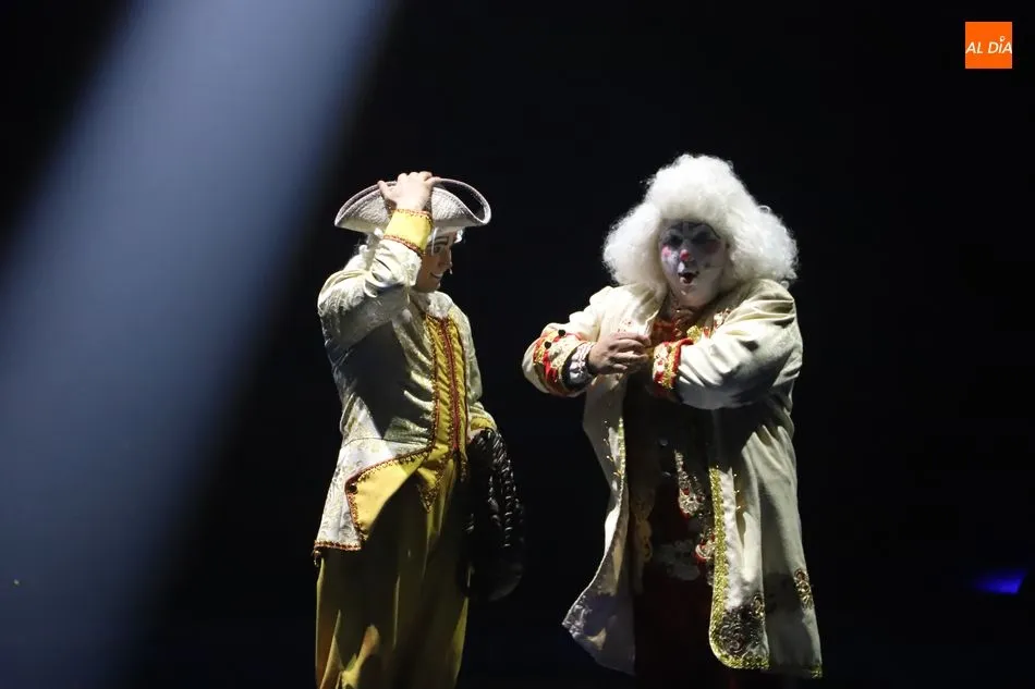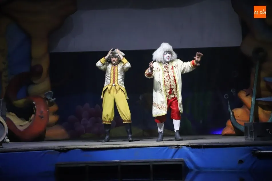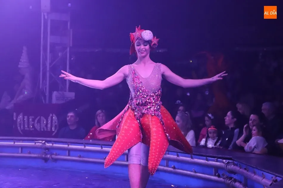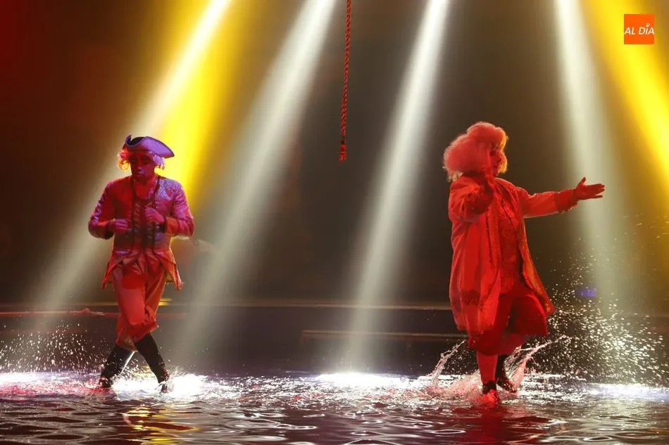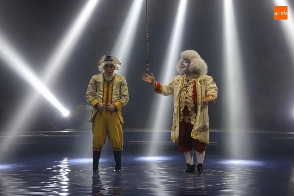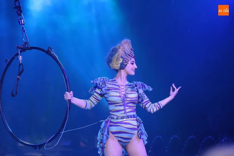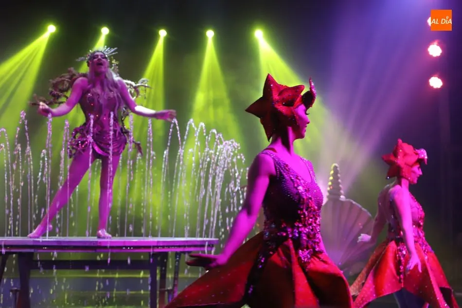 El Circo sobre Agua, un reto para las artes escénicas, ha hecho las delicias del público asistente al espectáculo que por primera vez recalaba en Salamanca, en la gran carpa climatizada del Circo Alegría instalada en el CC El Tormes. Un espectáculo que combina música, voz en directo, efectos especiales de iluminación y las fuentes de agua bailando al compás de las notas musicales.
