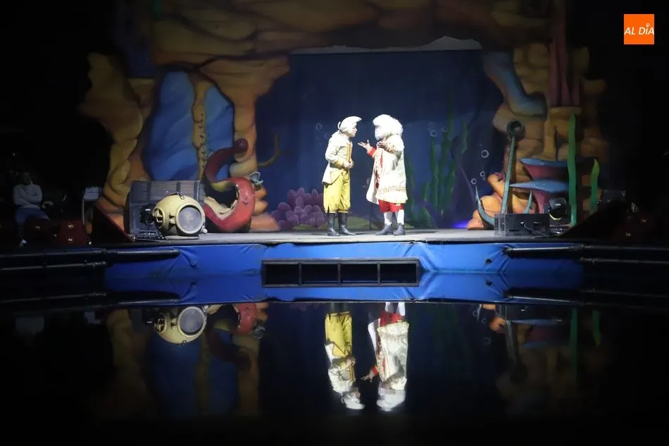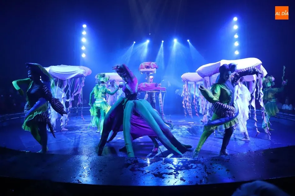 Este espectáculo se desarrolla en una pista convertida en piscina con 24.000 litros de agua en circuito cerrado. Trapecistas, contorsionistas, payasos, piratas, sirenas, más de cuarenta artistas, han desfilado con sus números para esta función.