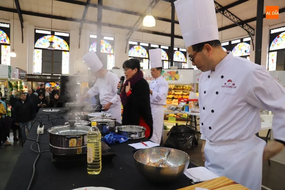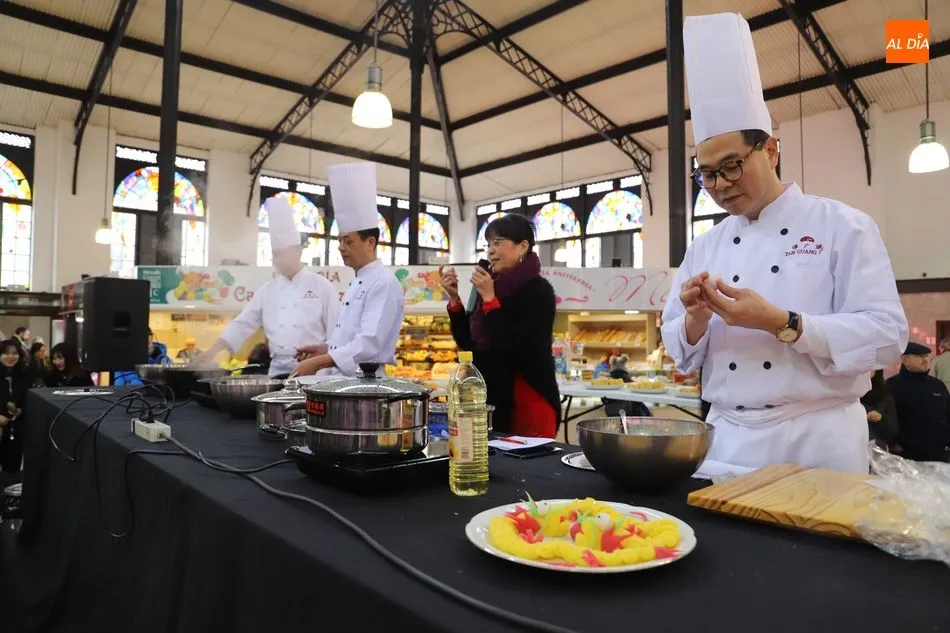 Las celebraciones del Año Nuevo Chino continúan ofreciendo numerosas actividades en Salamanca. Esta mañana ha sido el turno de la gastronomía, con una exhibición de cocina en el Mercado Central.