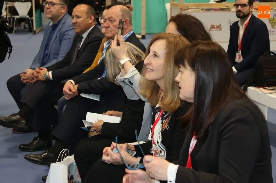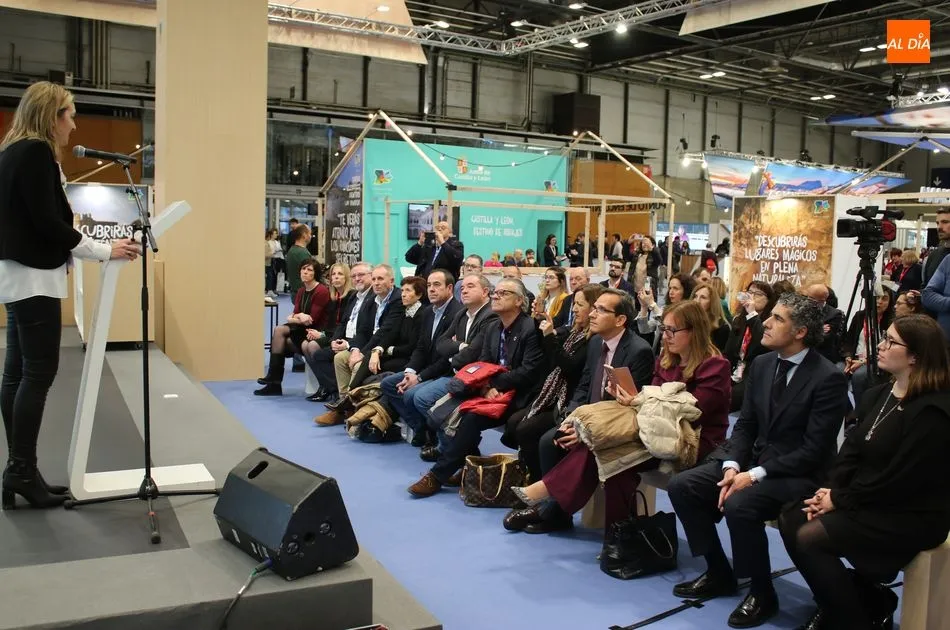 David Esteban, presidente de la Red de Conjuntos Históricos de Castilla y León fue el encargado de presentar los objetivos de la asociación en el stand de la Junta de Castilla y León. A la presentación acudió la directora general de Turismo, Estrella Torrecilla que estuvo acompañada por representantes de los pueblos que integran la red entre los que se encontraban la alcaldesa de Alba de Tormes, Concepción Miguélez y Gonzalo Bautista, concejal de Turismo.
