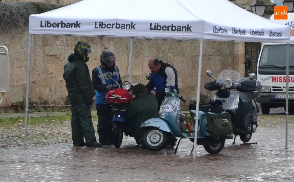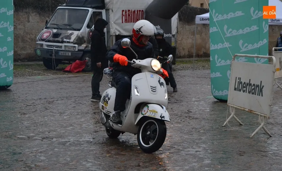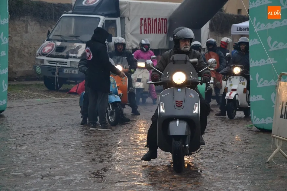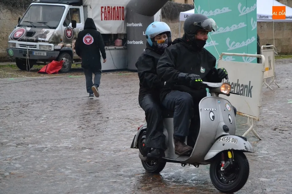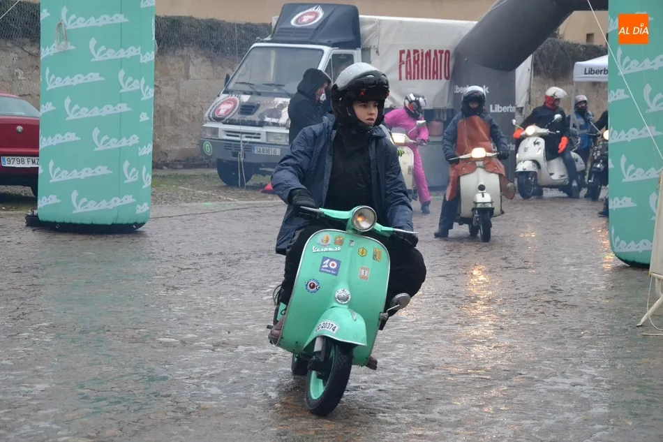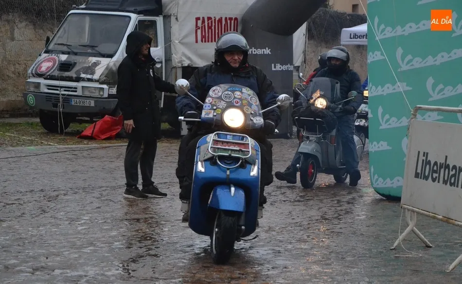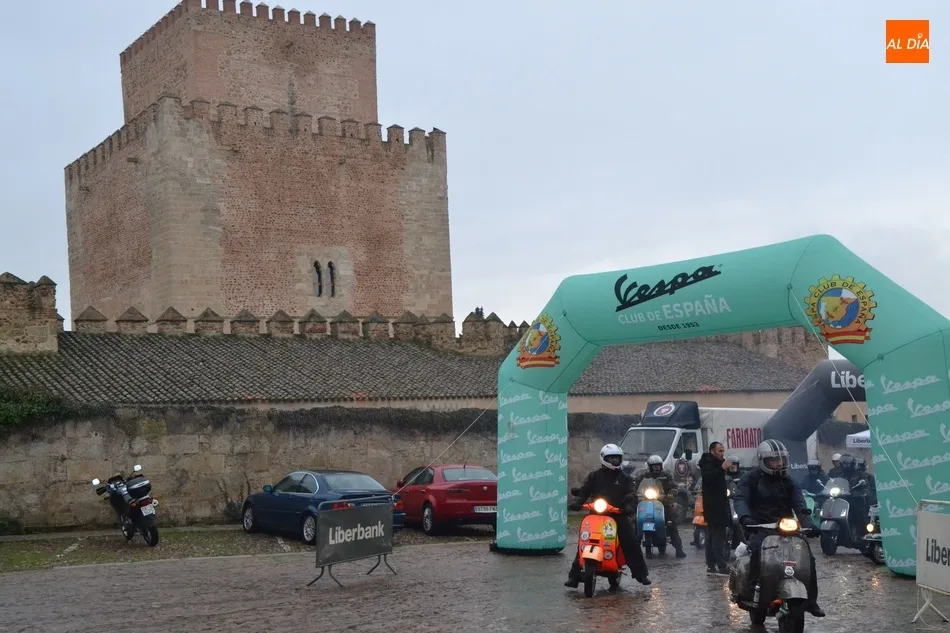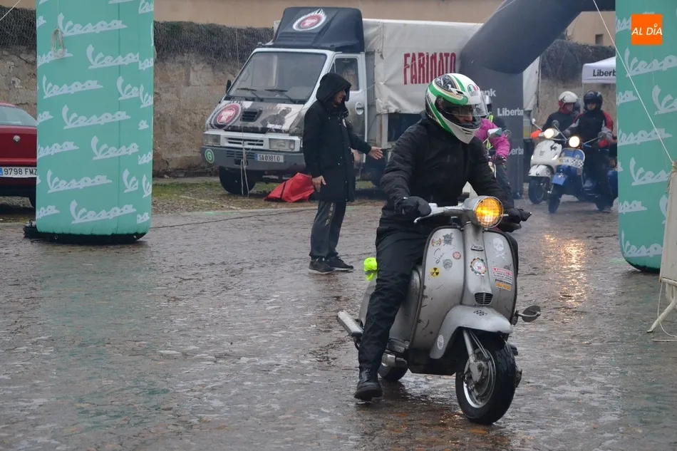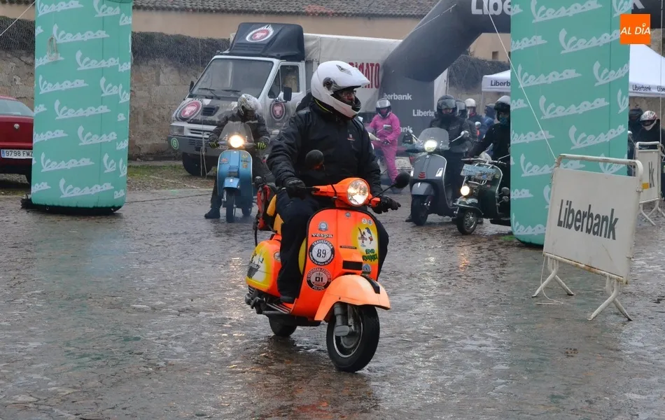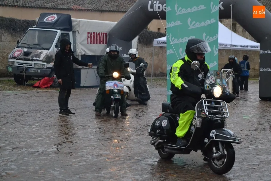 Bajo la lluvia con la que ha amanecido Ciudad Rodrigo este último sábado del mes de enero, unas 35 Vespas se pusieron en marcha a primera hora de la mañana en la Plazuela del Castillo rumbo a La Covatilla, en el marco del encuentro de Vespas CovaDouro del que es epicentro Miróbriga este fin de semana. El encuentro, organizado por el Vespa Club de Salamanca y Custom Classic Scooters, comenzó en la tarde-noche del viernes, con la llegada a Ciudad Rodrigo de los primeros participantes.
