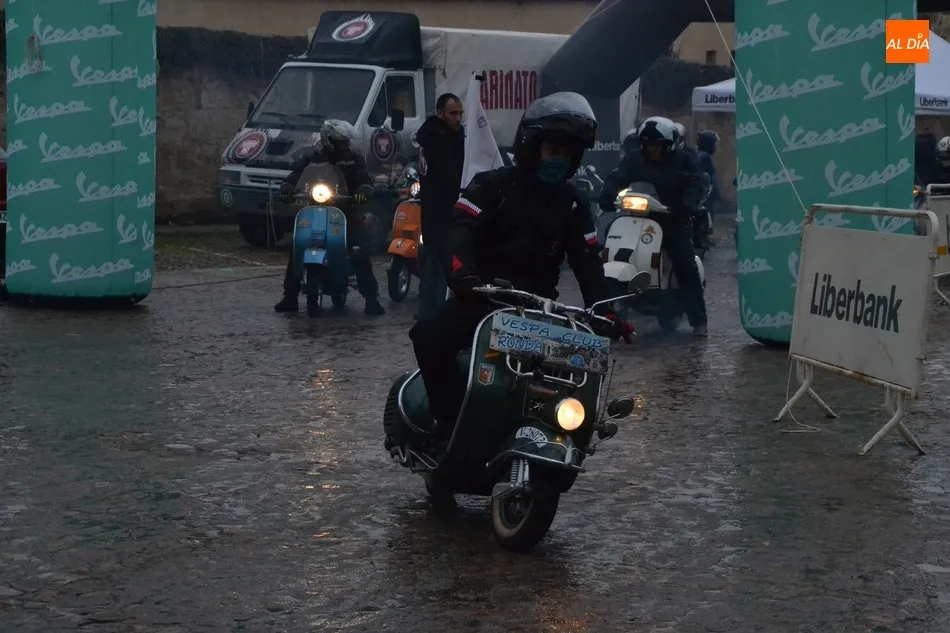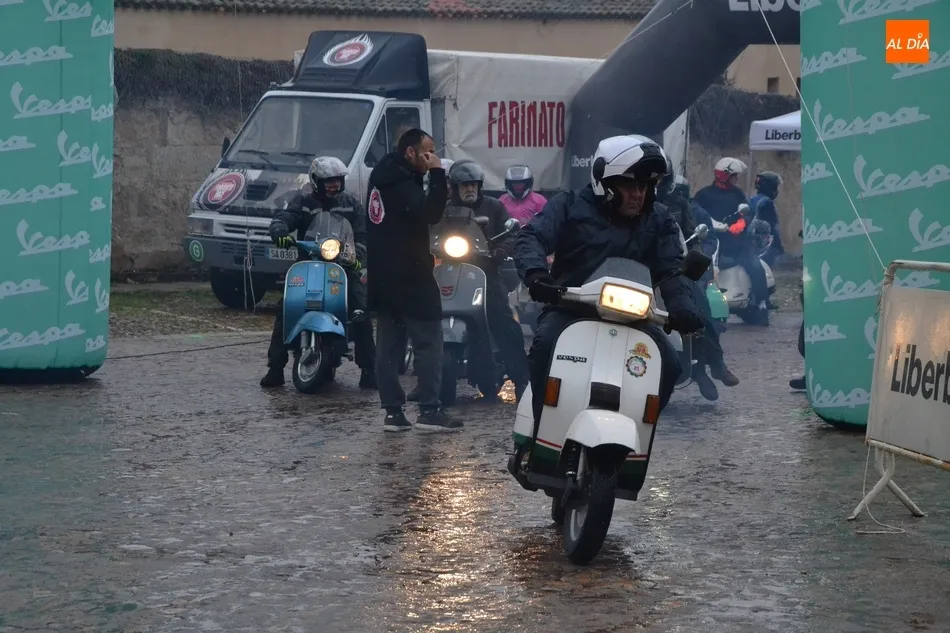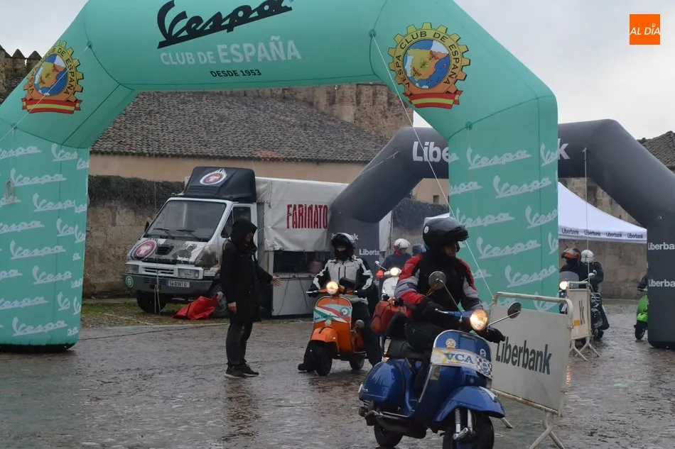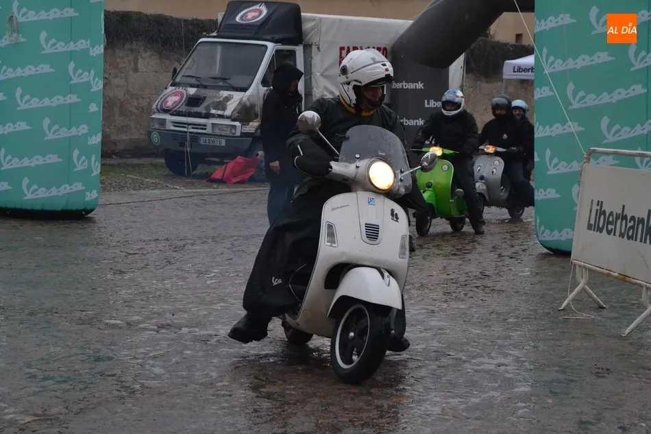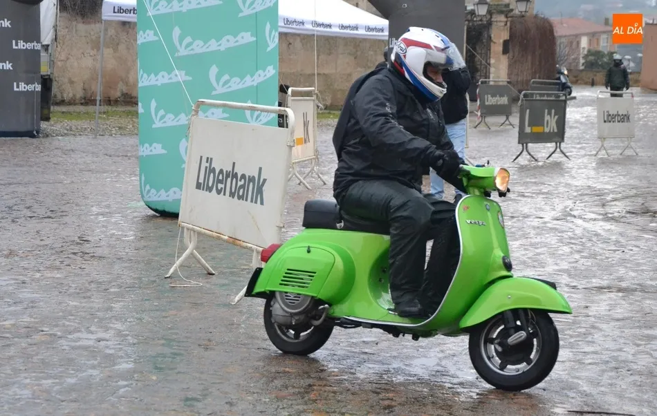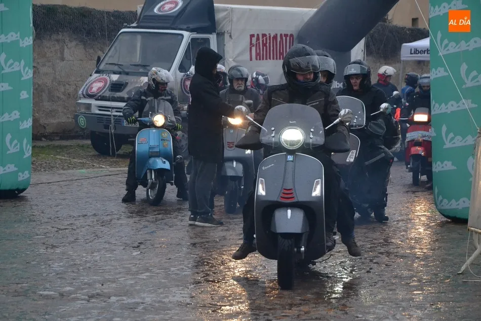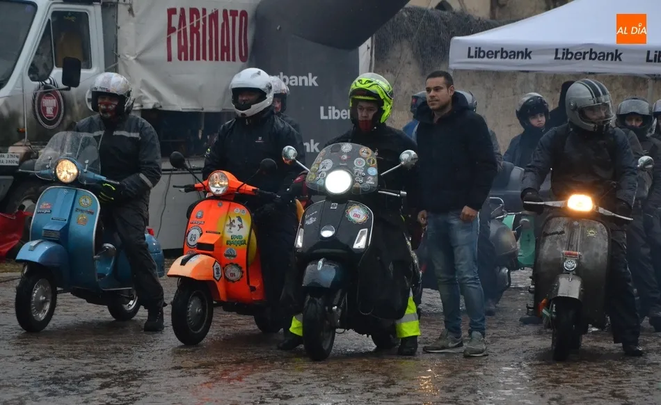 Unas 35 Vespas ponen rumbo bajo la lluvia hacia La Covatilla