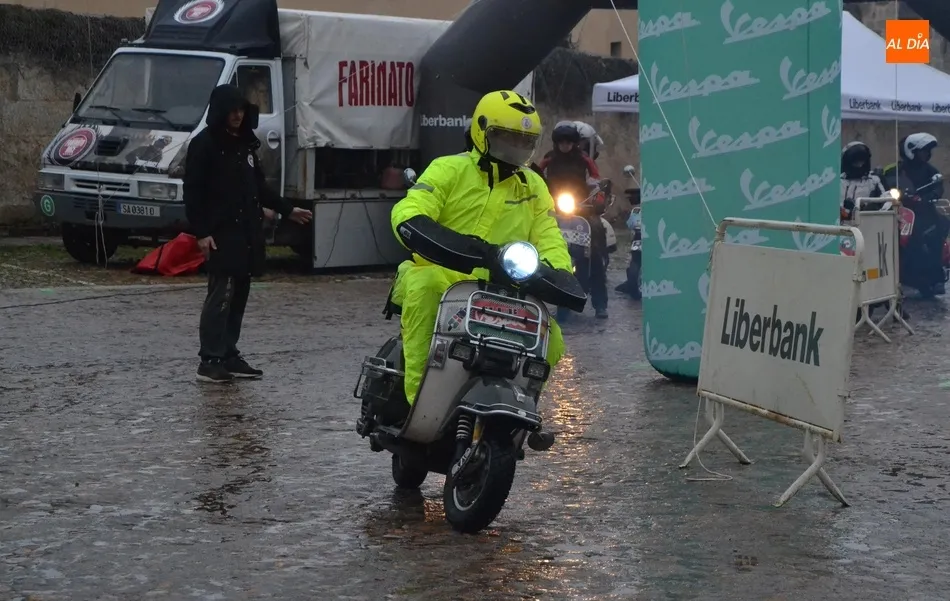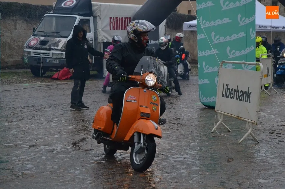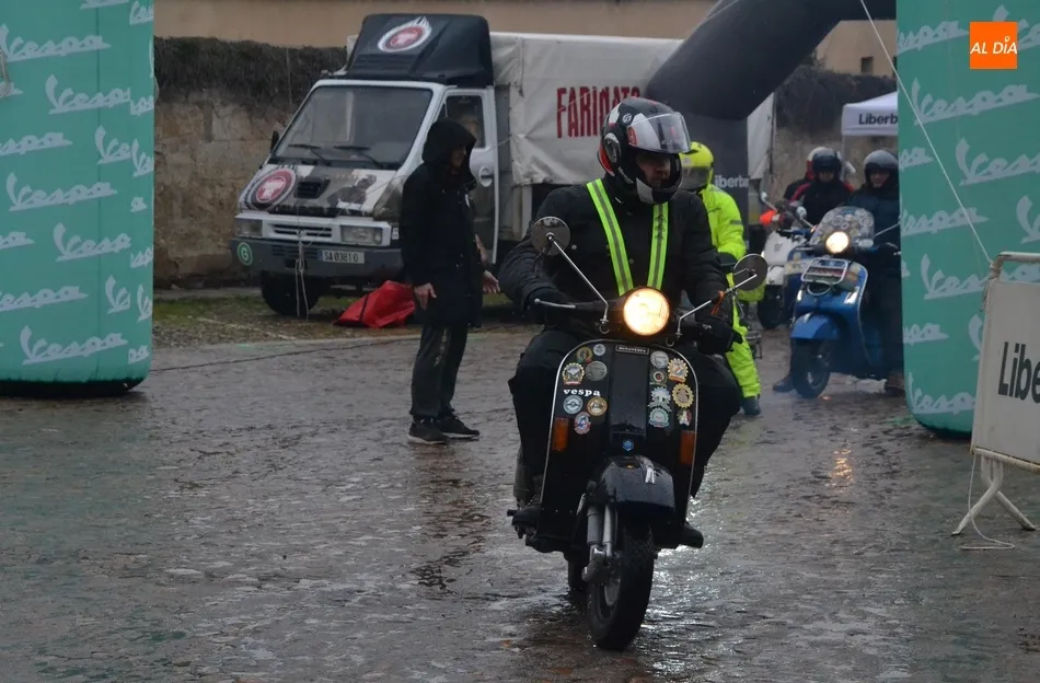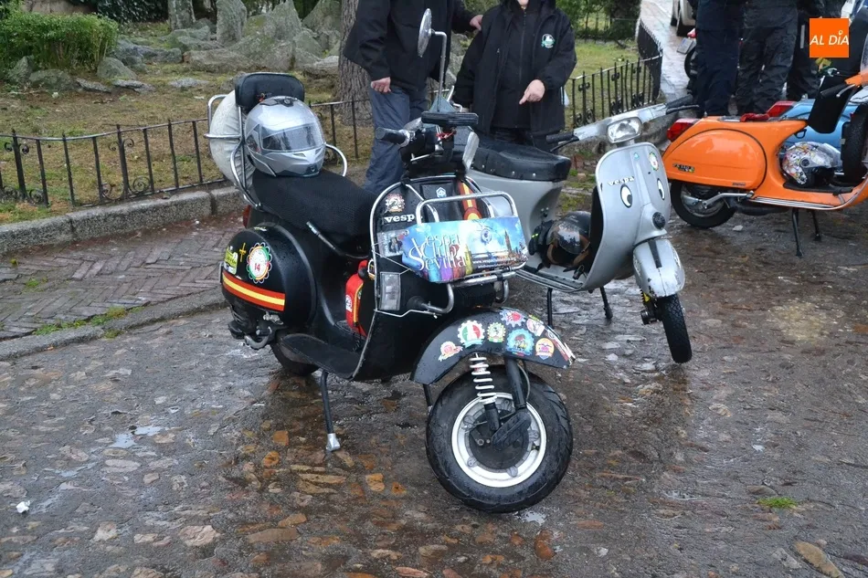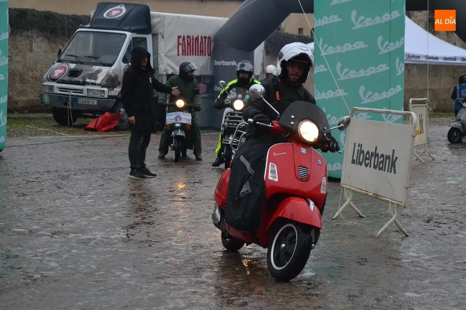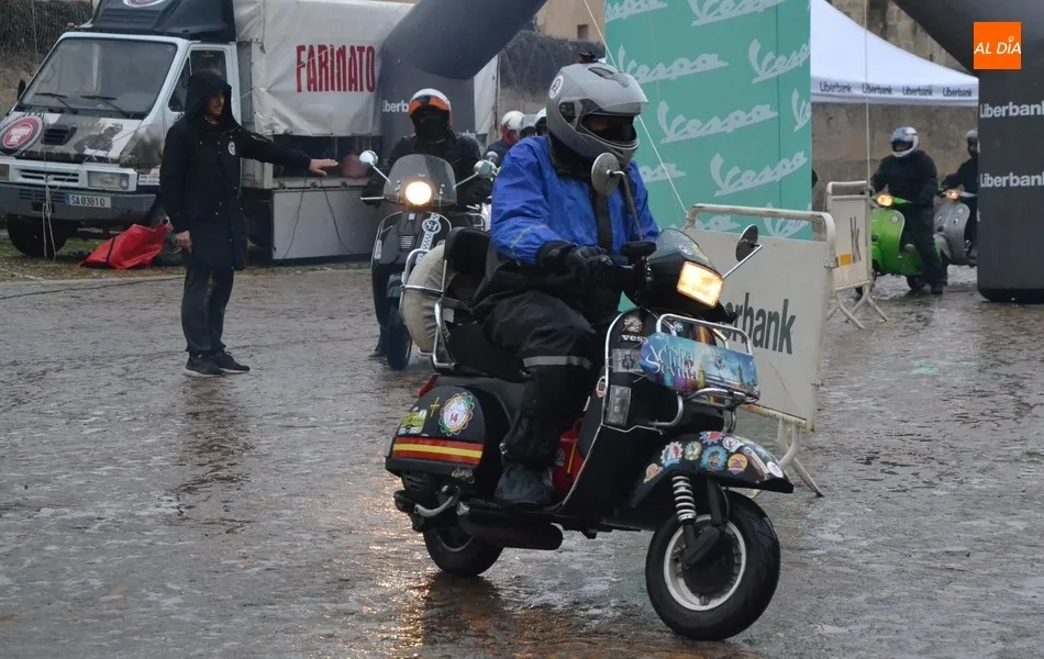 Unas 35 Vespas ponen rumbo bajo la lluvia hacia La Covatilla