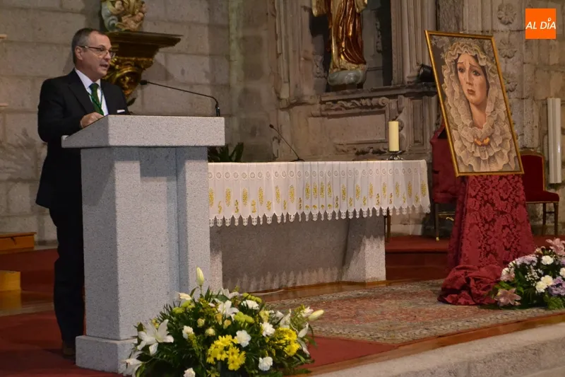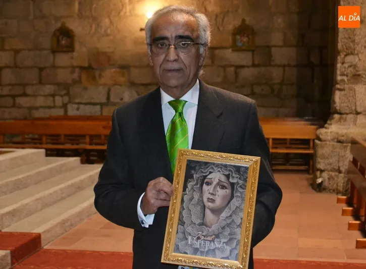 El pintor José Ángel Nava ha sido el encargado de realizar la imagen promocional presentada en la iglesia parroquial por el presidente de la Junta de la Semana Santa salmantina, José Adrián Cornejo