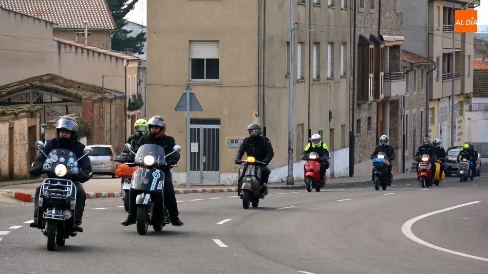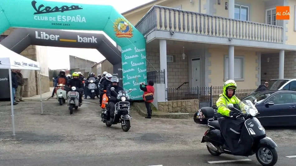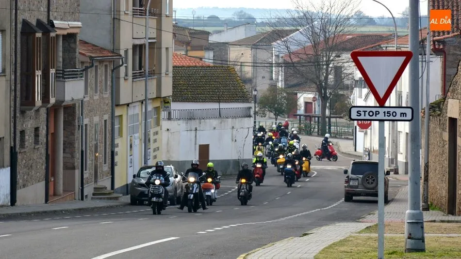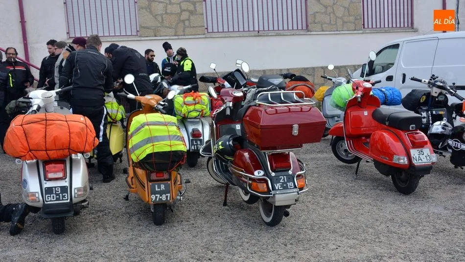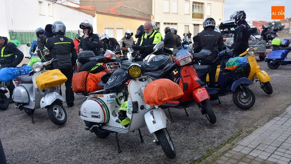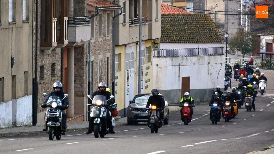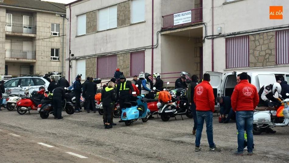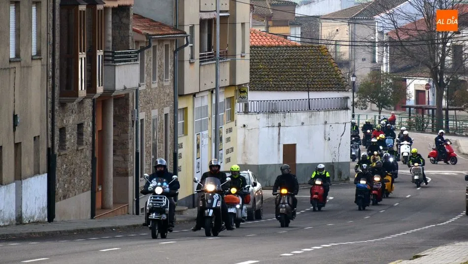 Los amantes de la clásica Vespa y del mototurismo han participado este fin de semana en la concentración Vespa CovaDouro 2020, una ruta invernal por la provincia, organizada por el Vespa Club de Salamanca. Después de la visita el sábado a La Covatilla, hoy domingo más de 50 moteros llegaron a Lumbrales, procedentes de Ciudad Rodrigo, para participar en un atracativo recorrido por las Arribes del Duero y del Huebra.
