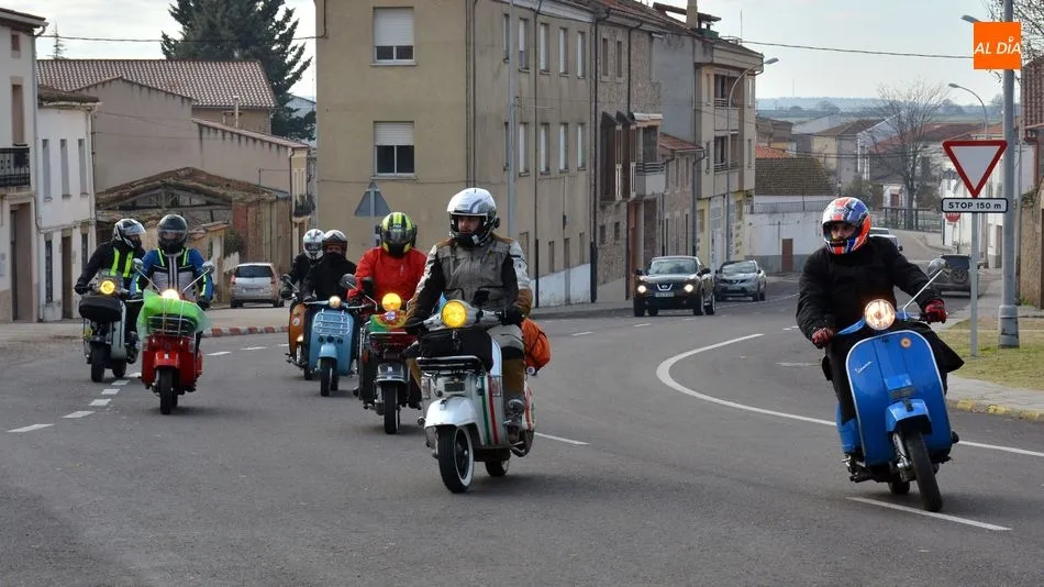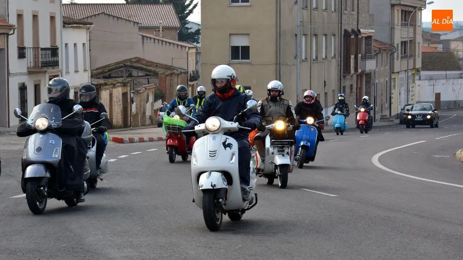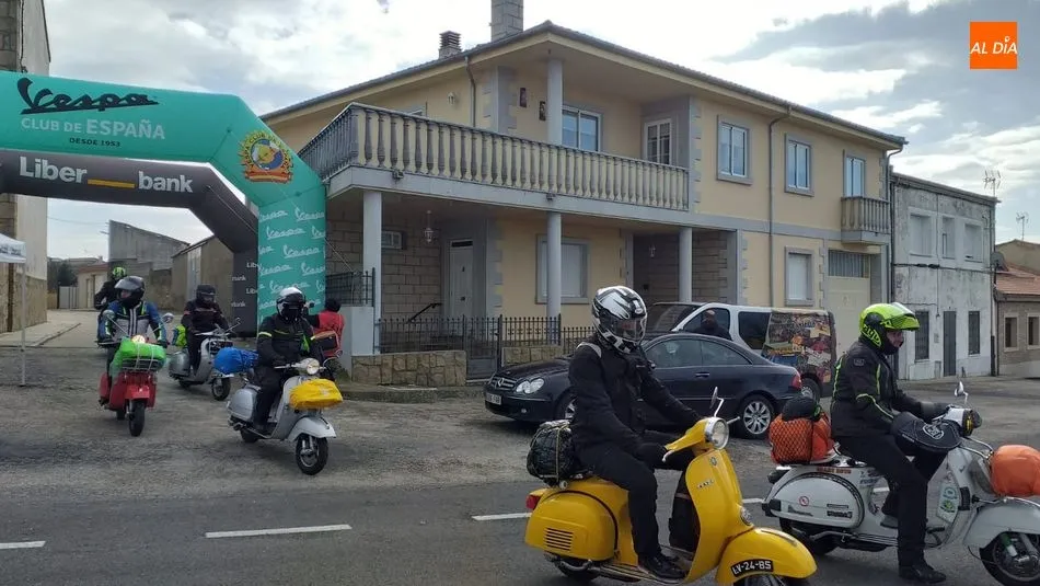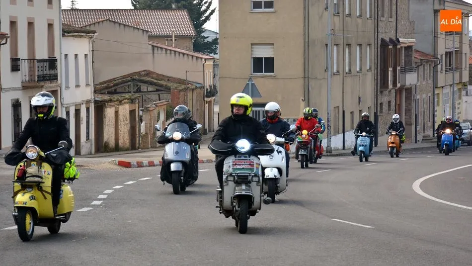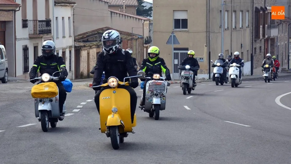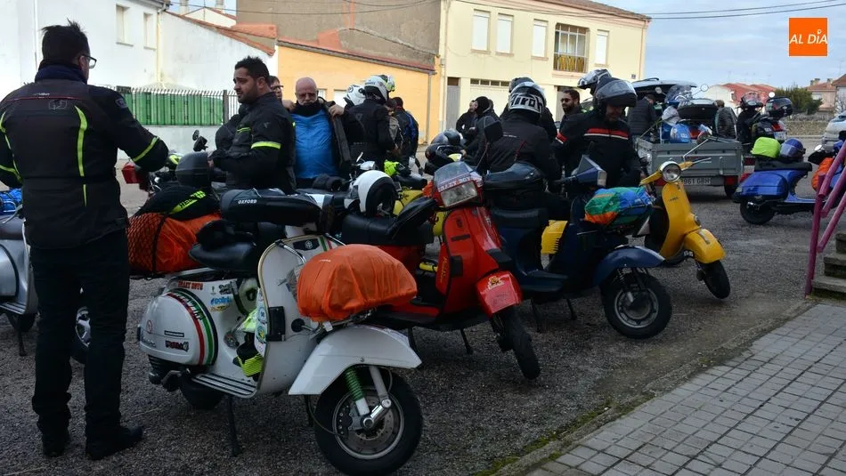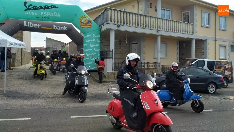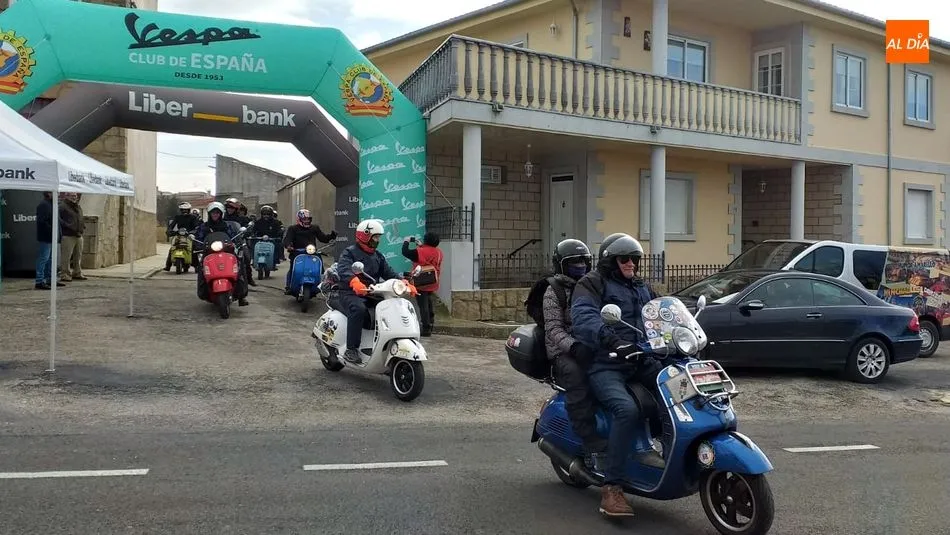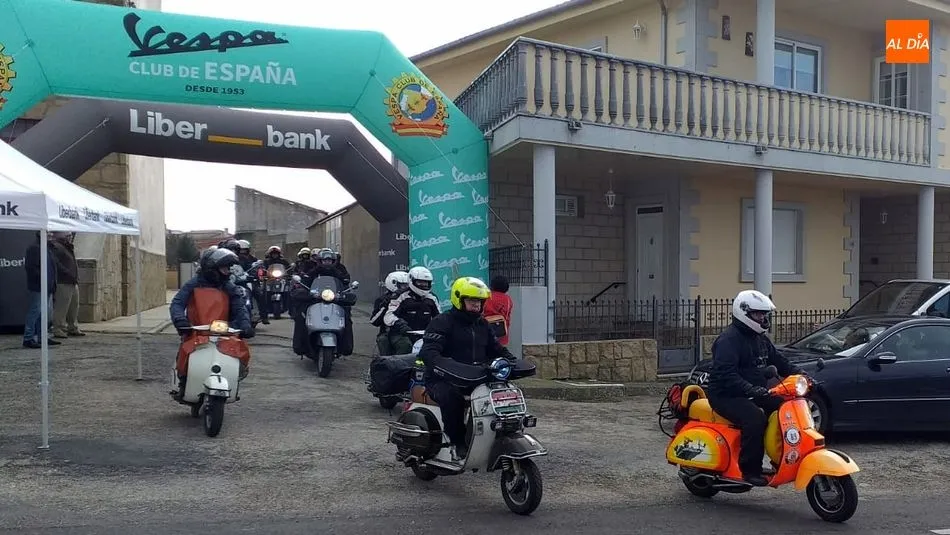 Los amantes de la clásica Vespa y del mototurismo han participado este fin de semana en la concentración Vespa CovaDouro 2020, una ruta invernal por la provincia, organizada por el Vespa Club de Salamanca. Después de la visita el sábado a La Covatilla, hoy domingo más de 50 moteros llegaron a Lumbrales, procedentes de Ciudad Rodrigo, para participar en un atracativo recorrido por las Arribes del Duero y del Huebra.