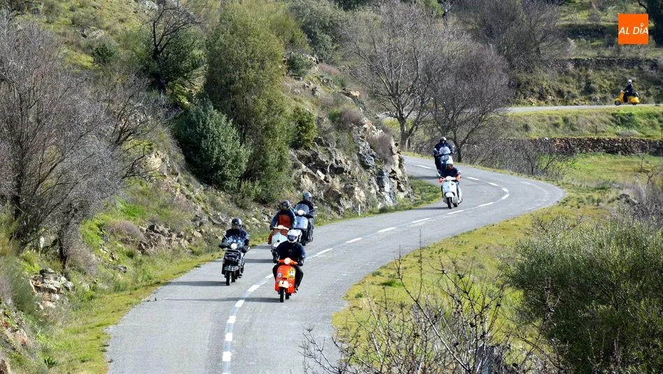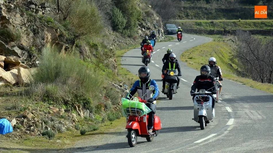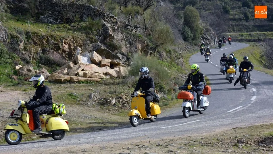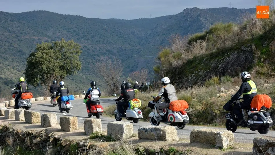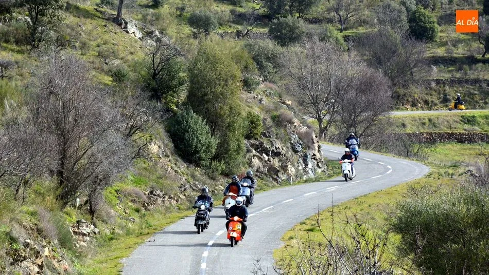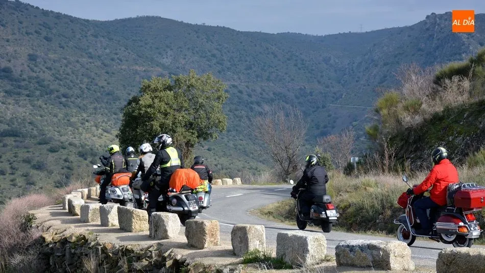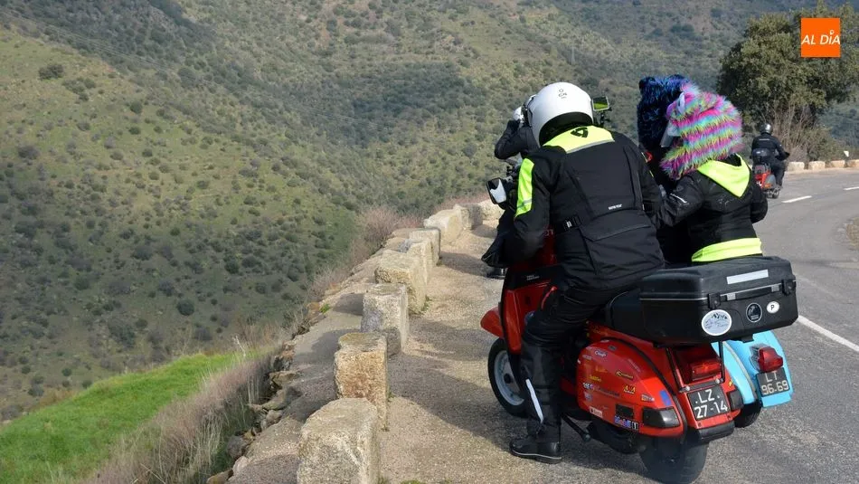 "La idea de hacer una ruta en esta zona es porque las Arribes del Duero, mototuristicamente hablando, es todavia una zona por descubrir, y el recorrido por el puerto de la Molinera tiene mucho atractivo, pues bajamos a casi 100 metros sobre el nivel del mar, donde encontramos un clima primaveral" explica Rubén Vega Ratero, presidente del Vespa Club de Salamanca. Es la segunda ocasión en que este club promueve esta ruta por el oeste salmantino, un recorrido que ofrece a los aficionados al mototurismo disfrutar circulando por carreteras con curvas pronunciadas, descubrir parajes impresionantes y conocer a gente de distinta procedencia. Al encuentro de este fin de semana han asistido motoristas de Portugal y distintos lugares de la geografía española, como Galicia, Andalucía, Extremadura, Barcelona e incluso Ibiza.