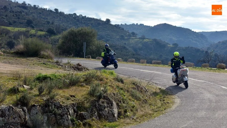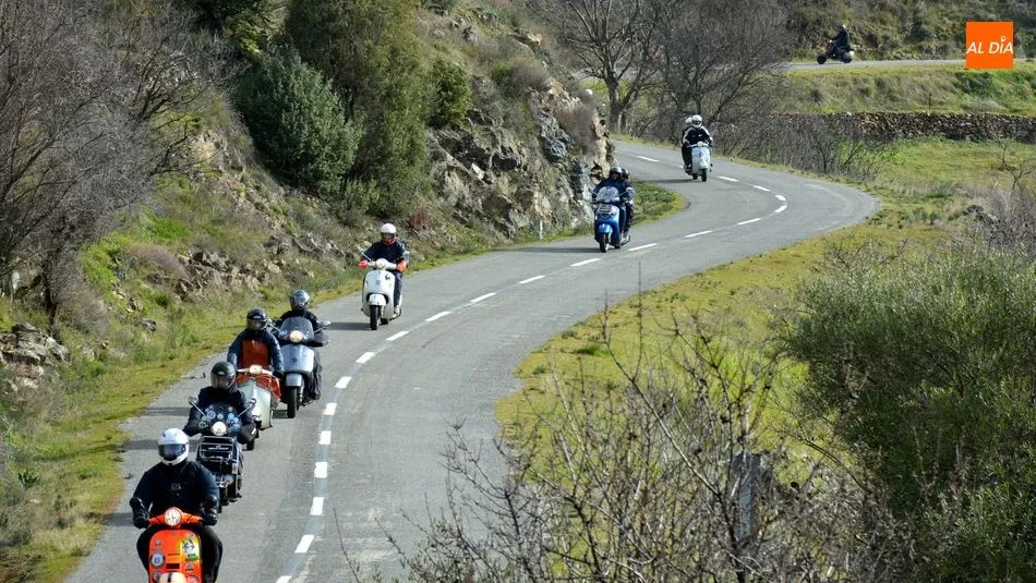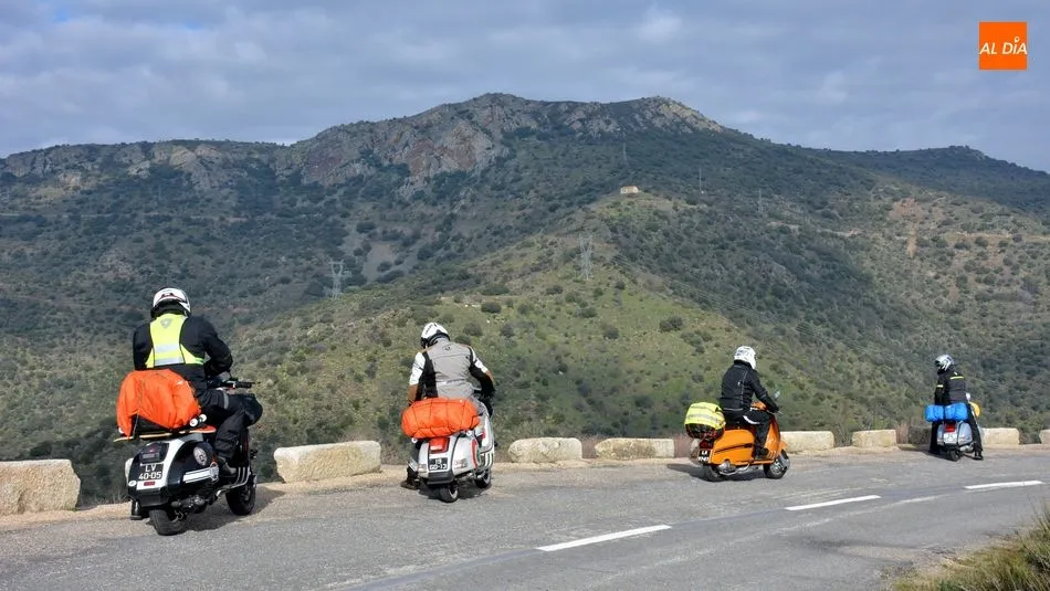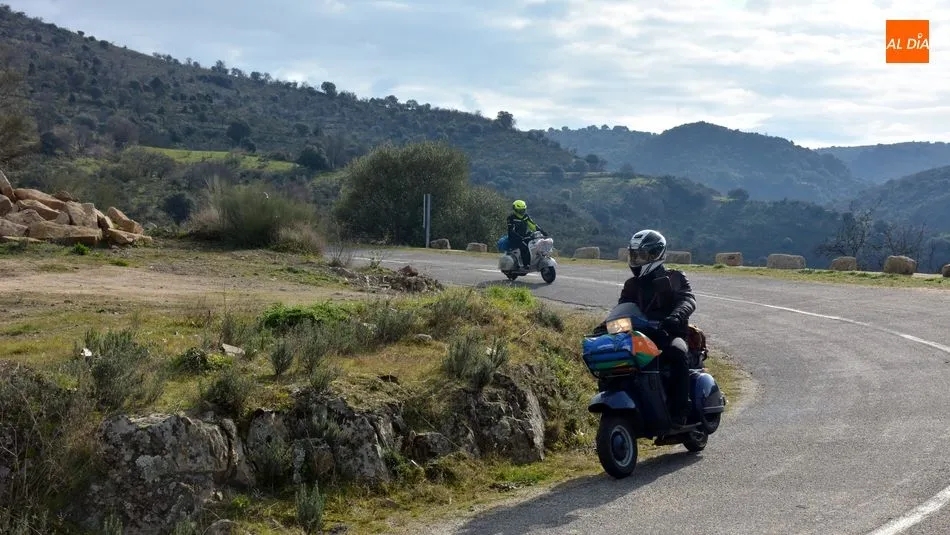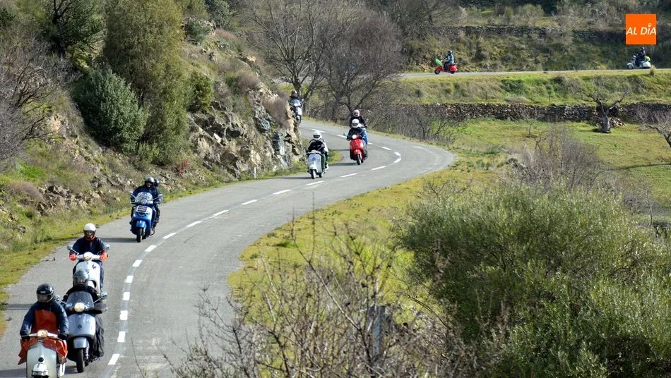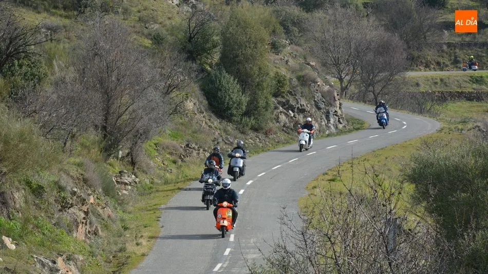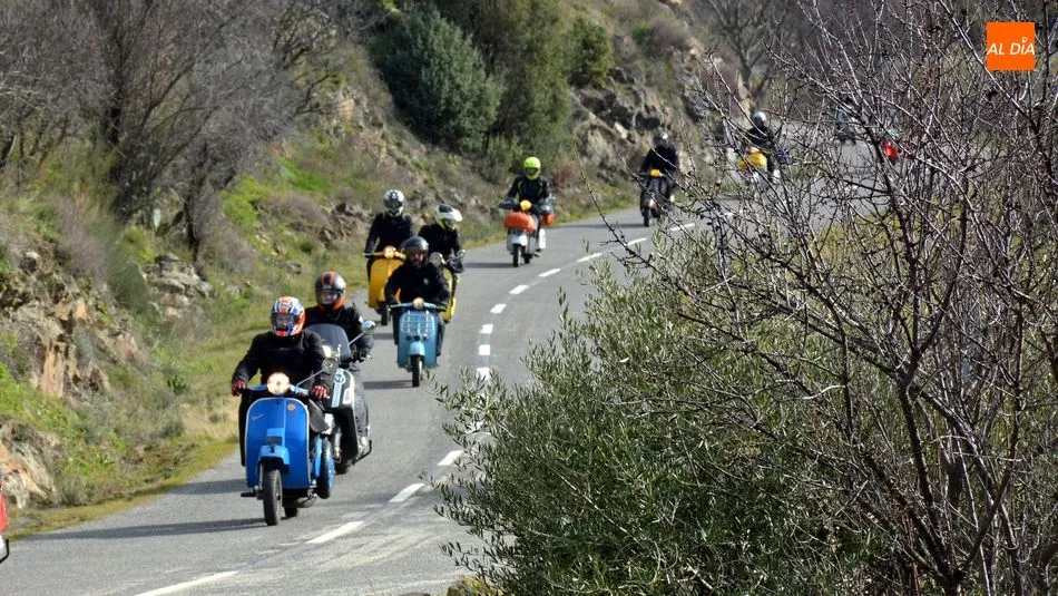 "La idea de hacer una ruta en esta zona es porque las Arribes del Duero, mototuristicamente hablando, es todavia una zona por descubrir, y el recorrido por el puerto de la Molinera tiene mucho atractivo, pues bajamos a casi 100 metros sobre el nivel del mar, donde encontramos un clima primaveral" explica Rubén Vega Ratero, presidente del Vespa Club de Salamanca. Es la segunda ocasión en que este club promueve esta ruta por el oeste salmantino, un recorrido que ofrece a los aficionados al mototurismo disfrutar circulando por carreteras con curvas pronunciadas, descubrir parajes impresionantes y conocer a gente de distinta procedencia. Al encuentro de este fin de semana han asistido motoristas de Portugal y distintos lugares de la geografía española, como Galicia, Andalucía, Extremadura, Barcelona e incluso Ibiza.
