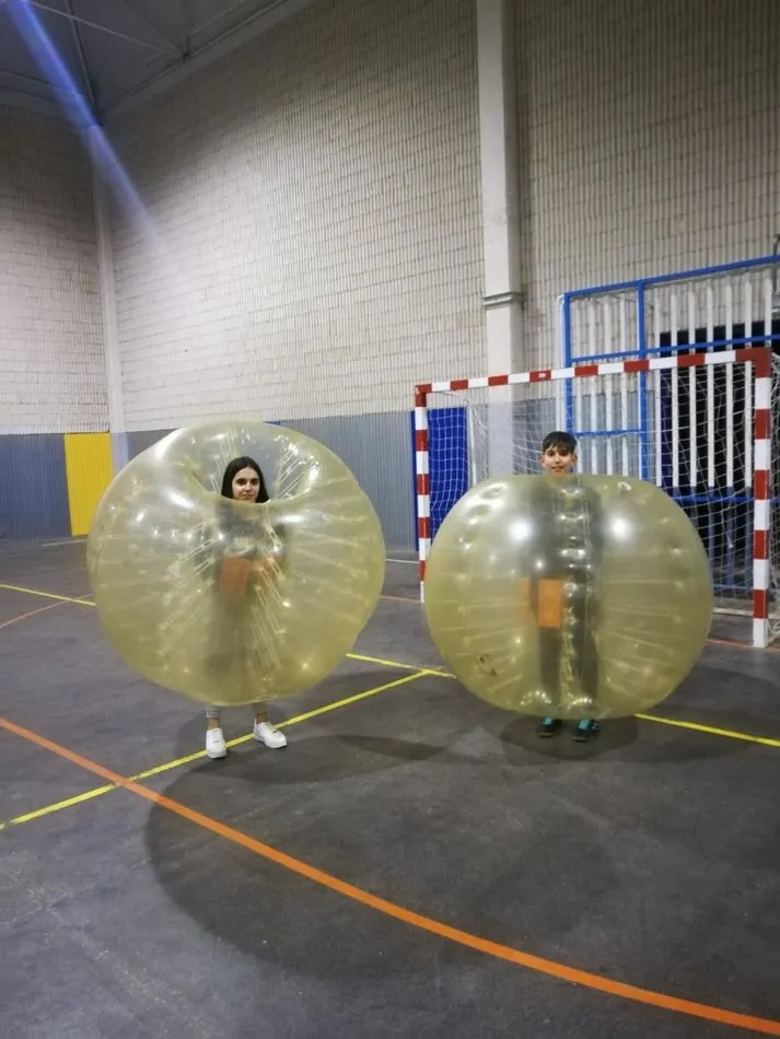 Los chicos y chicas del internado del colegio Calasanz ya saben lo que es el fútbol burbuja, una divertida disciplina en la que los jugadores de ambos equipos ?visten? una enorme burbuja de aire desde el cuello hasta las rodillas.