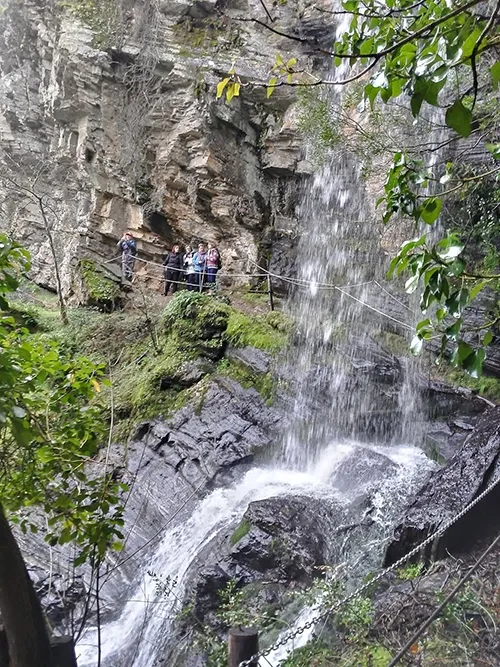 En esta ocasión, el primer destino sería la cascada de Pinero, precioso salto de agua de unos 15 metros que permite a los senderistas contemplarlo desde la parte interior del que es el arroyo de La Puente y que más abajo desemboca en el río Uces.