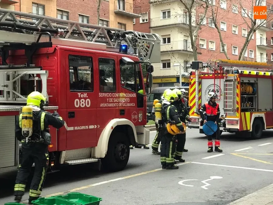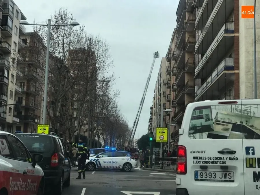 Los agentes de extinción de incendios han tenido que desplegar su escala móvil y dos patrullas de la Policía Local acudían a la zona e incluso cortaban el tráfico en la avenida de Portugal, tras el cruce con María Auxiliadora, para facilitar las labores de los Bomberos.