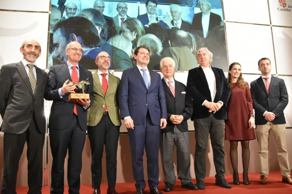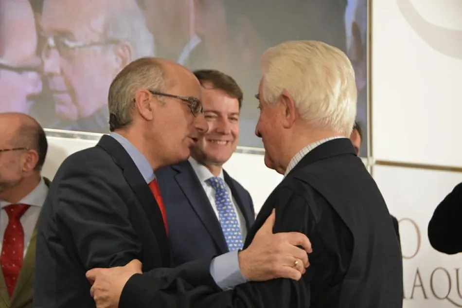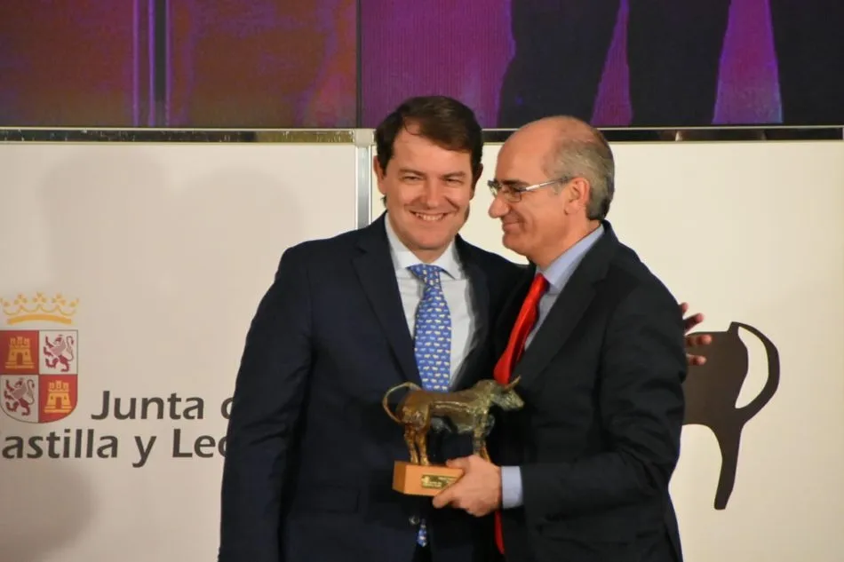 El presidente de la Diputación de Salamanca, Javier Iglesias, recibió este martes de manos del presidente de la Junta de Castilla y León, Alfonso Fernández Mañueco, el premio de Tauromaquia Castilla y León 2019.
