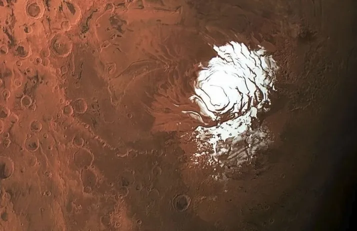 Tras explorar la existencia de un depósito masivo de hielo de CO2 y hielo de agua en estratos alternos que se extienden a una profundidad de un kilómetro