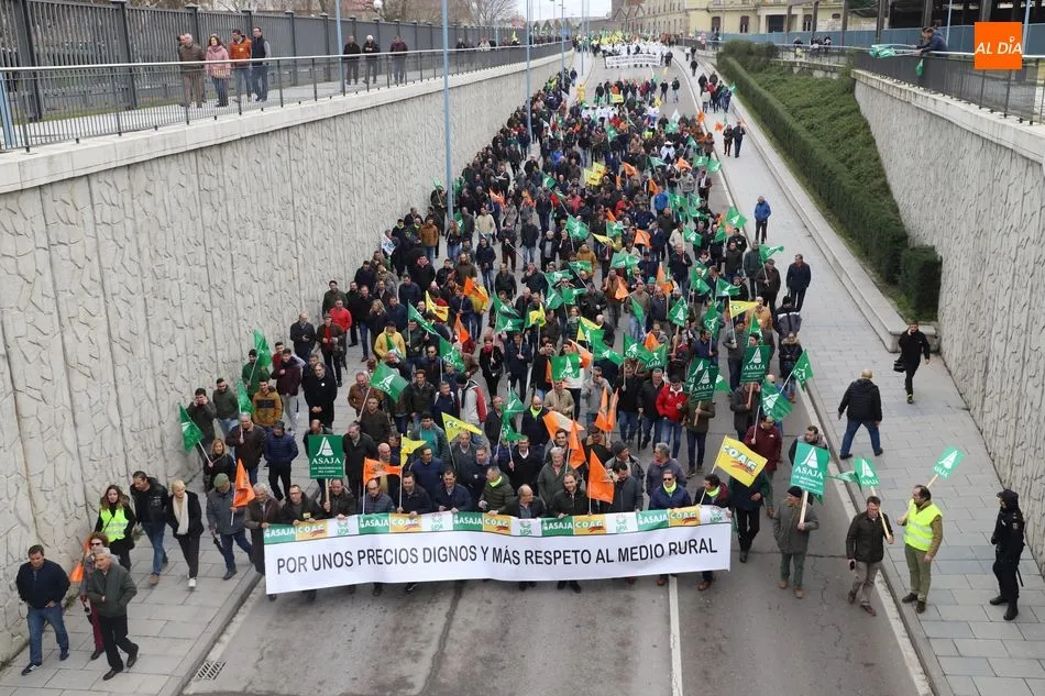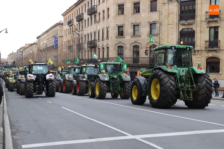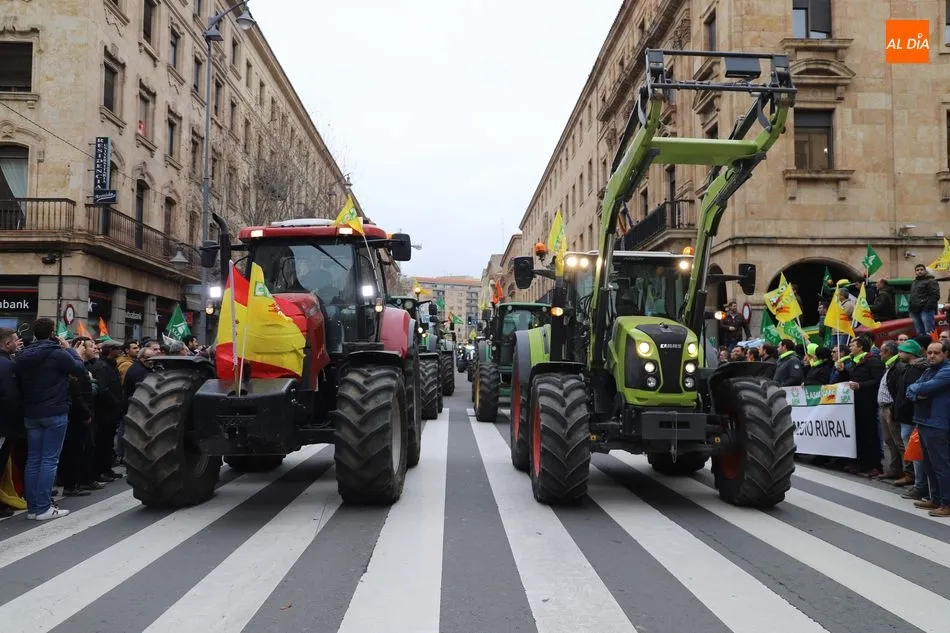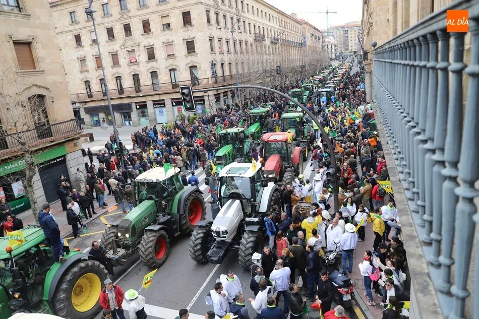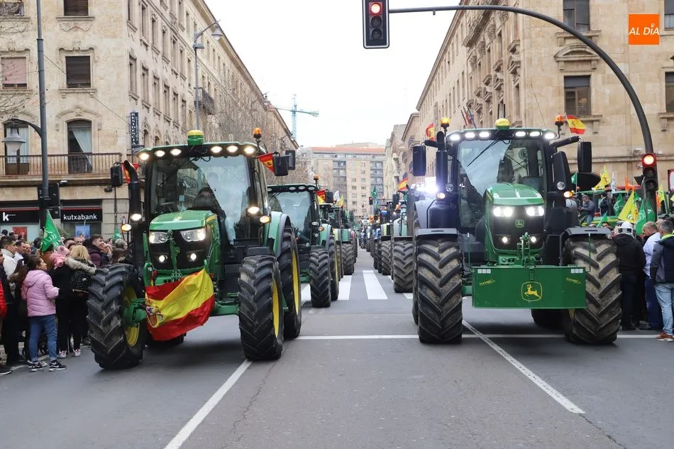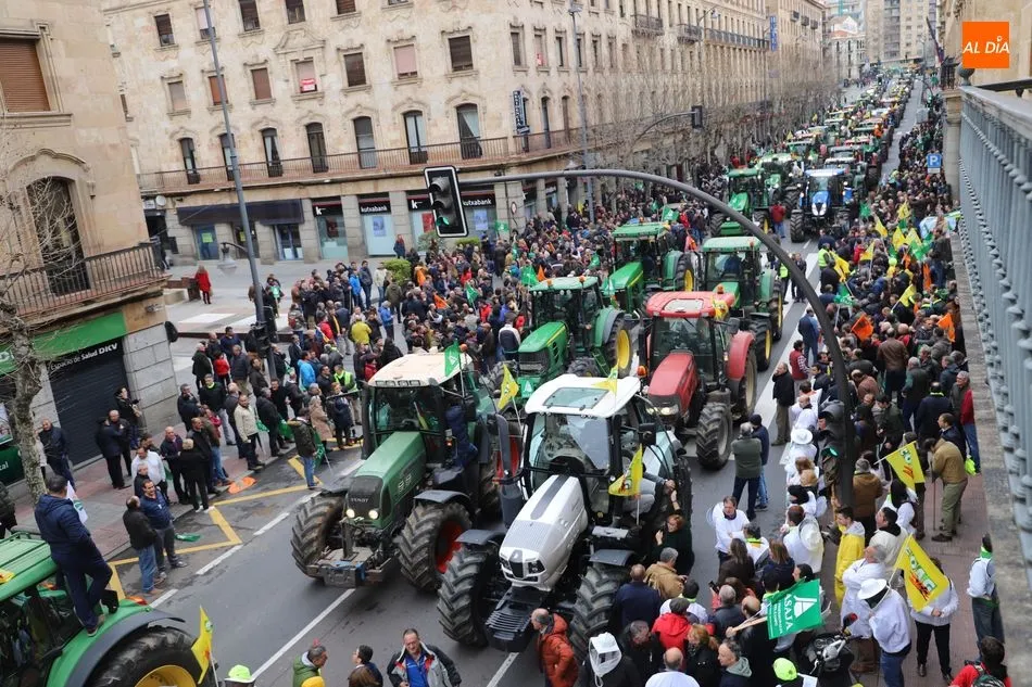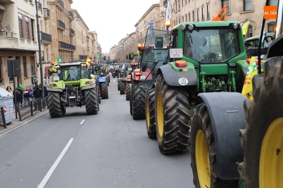 Cerca de 3.000 manifestantes y 300 tractores han protagonizado la marcha de los profesionales del campo en Salamanca, para denunciar la crisis en la rentabilidad de este sector. Una movilización de 3 kilómetros que ha colapsado el tráfico de la capital charra en vías destacadas como la avenida de la Aldehuela, el paseo de Canalejas o la Gran Vía.