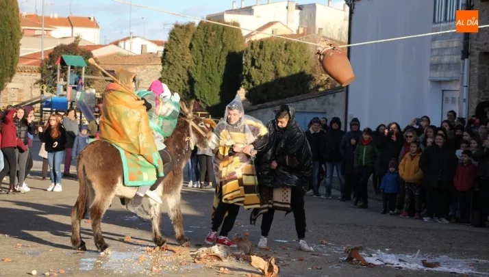 La rotura de cántaros a lomos de burros en la calle El Caño es sin duda el acto central de la fiesta de quintos en Vitigudino, un momento que se vivirá con intensidad este sábado, 1 de febrero, a partir de las cuatro de la tarde.