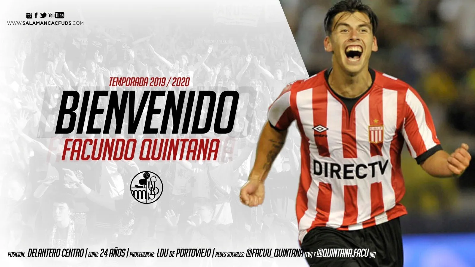 Mientras, el club oficializó la incorporación del argentino Facundo Quintana, delantero centro, de 24 años, que llega del LDU de Portoviejo de Ecuador y de Owen Falconis, que ocupa la misma demarcación y viene de Defensor SC.