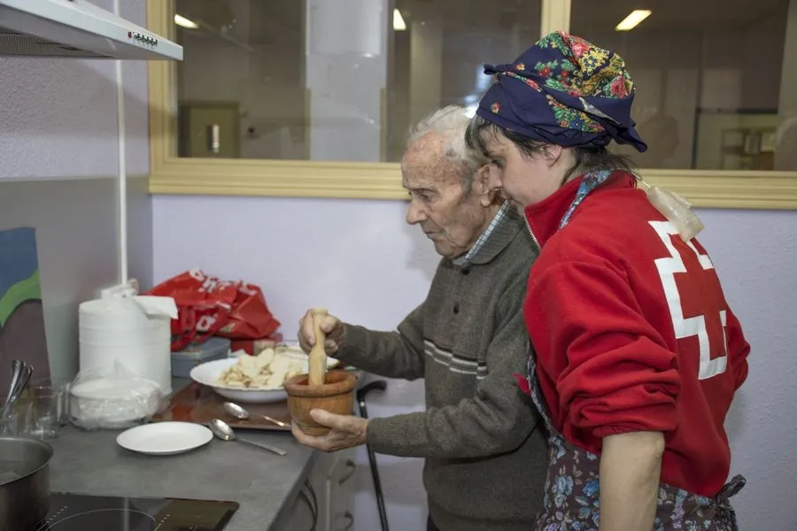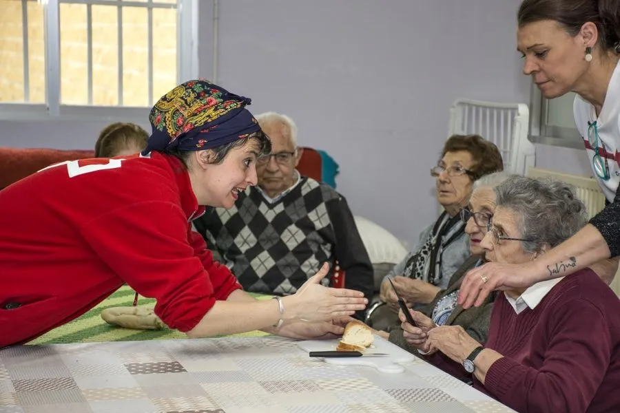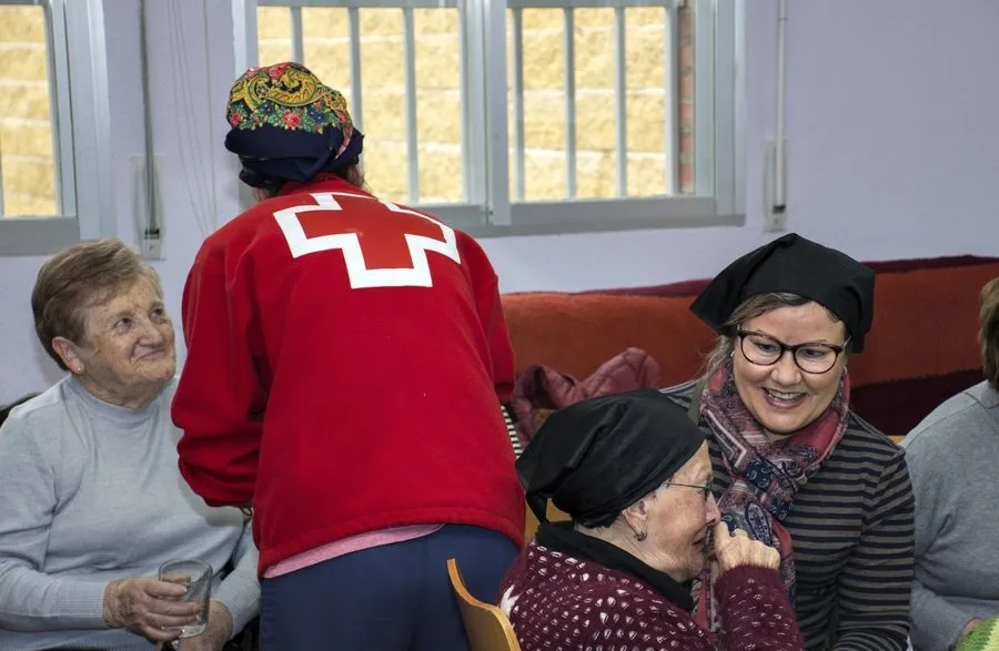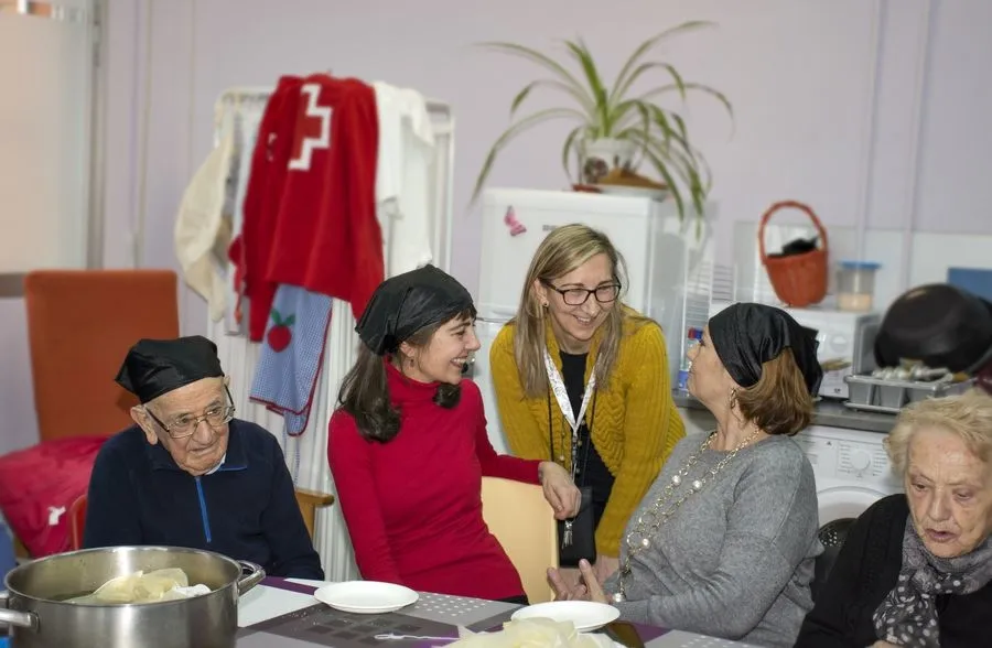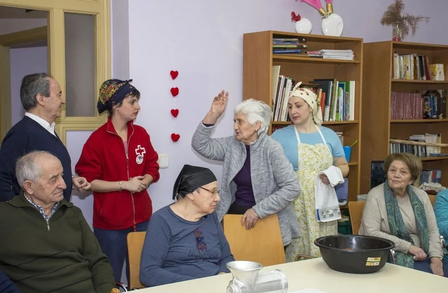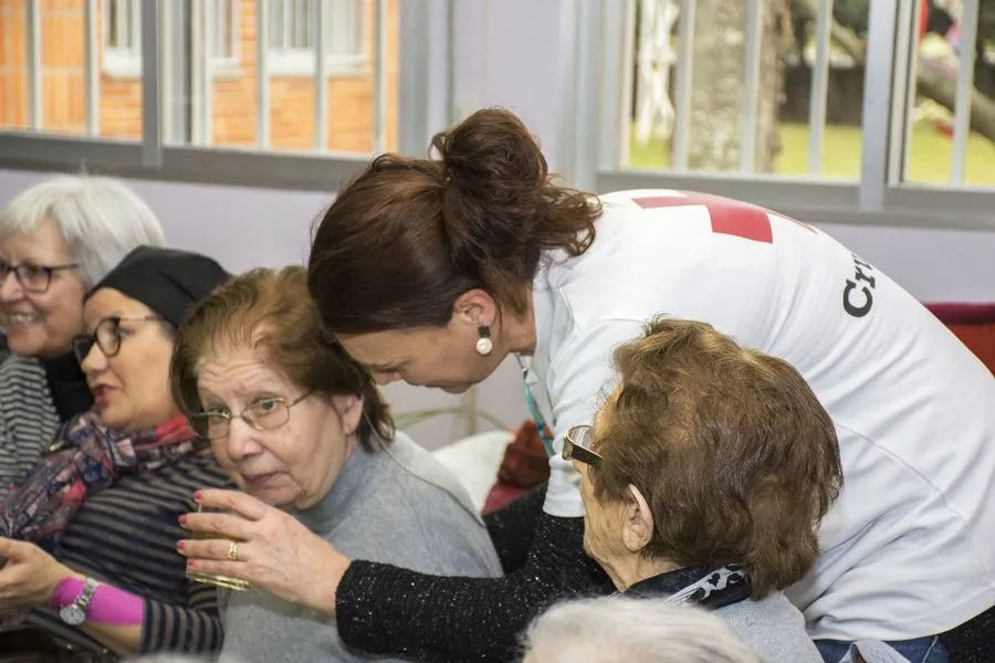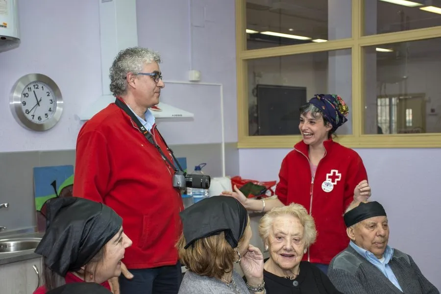 Voluntarios y monitores de Cruz Roja Salamanca han compartido este miércoles una divertida iniciativa con la mayores del Centro de Día que gestiona esta ONG en Valdelagua.