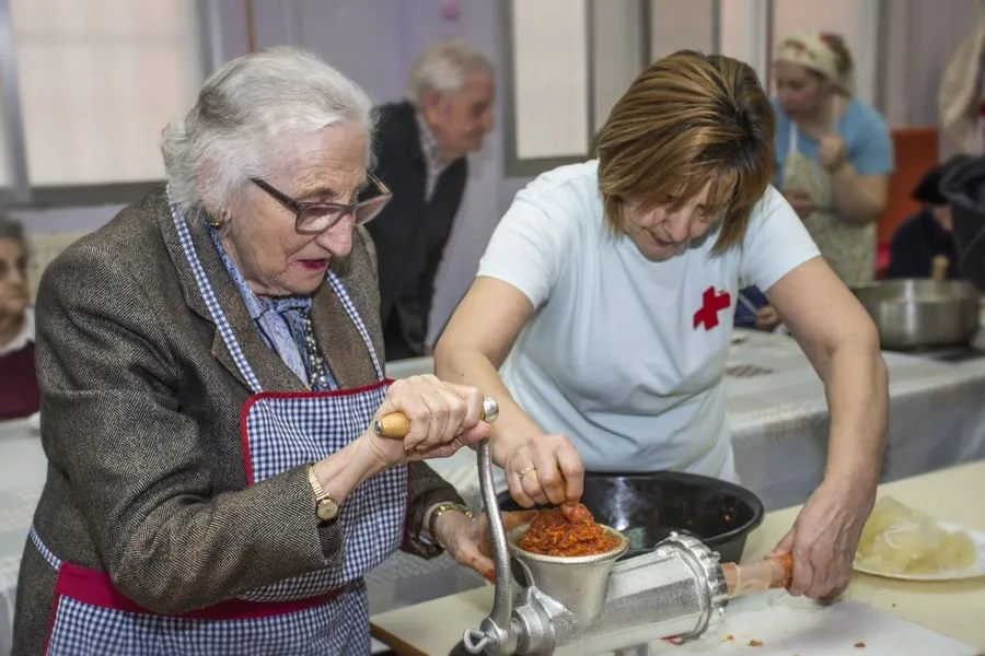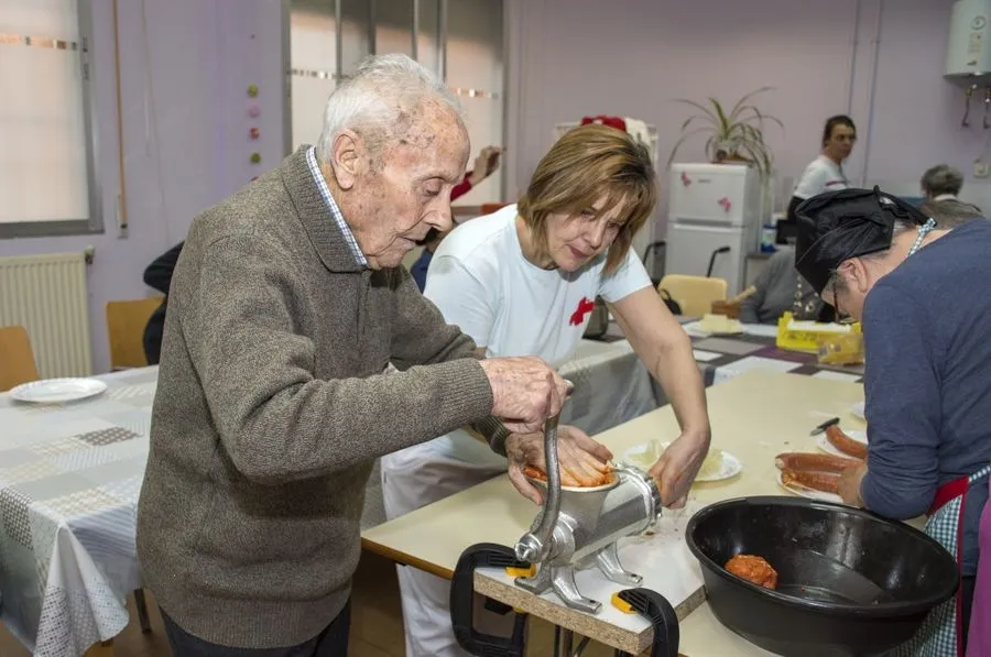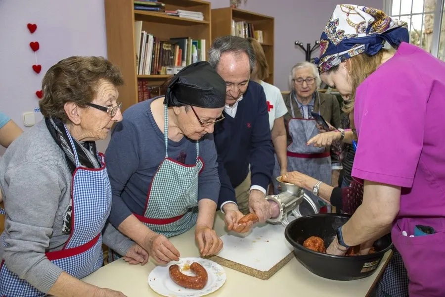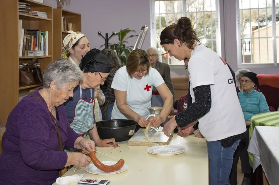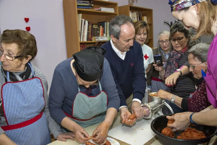 La actividad estaba relacionada con la matanza y, de hecho, los participantes pudieron recordar otros tiempos al elaborar chorizos y degustar las típicas chicas. Además, el presidente provincial de Cruz Roja, Jesús Juanes, se unía a la celebración de esta entrañable jornada.