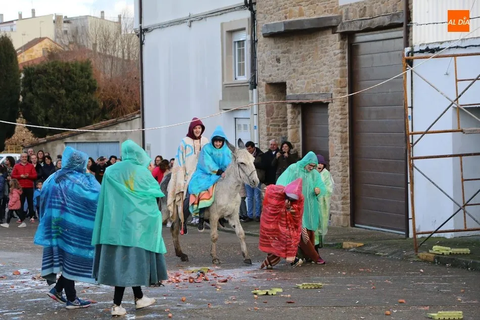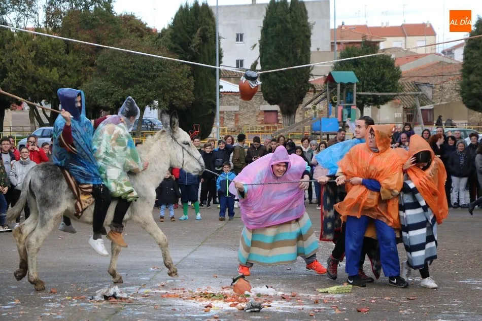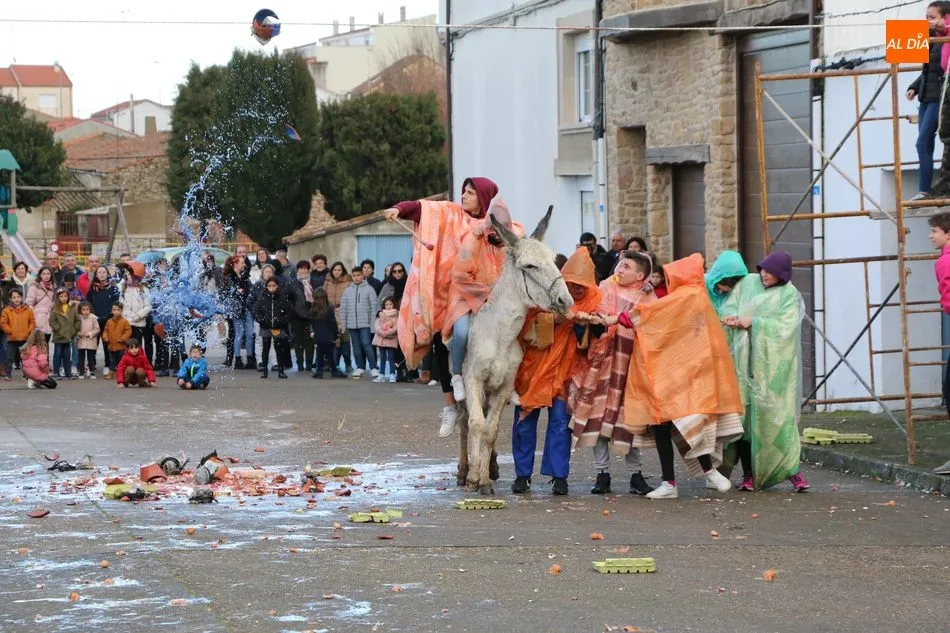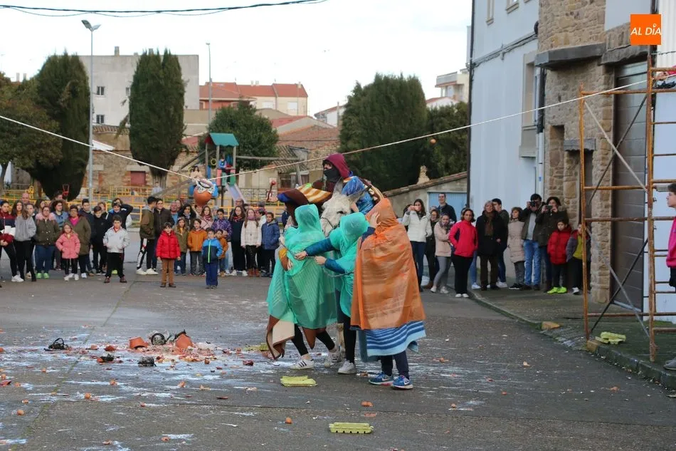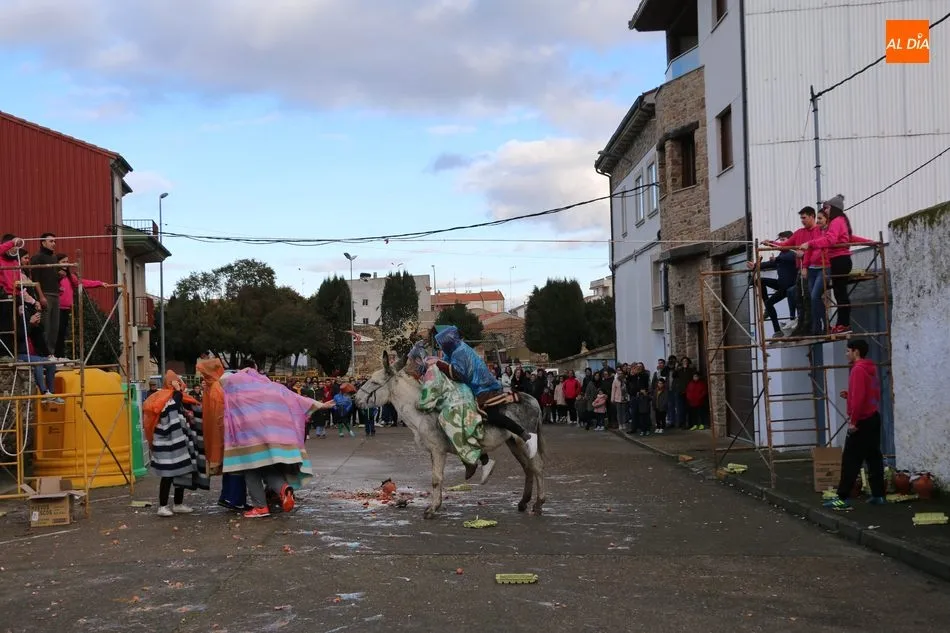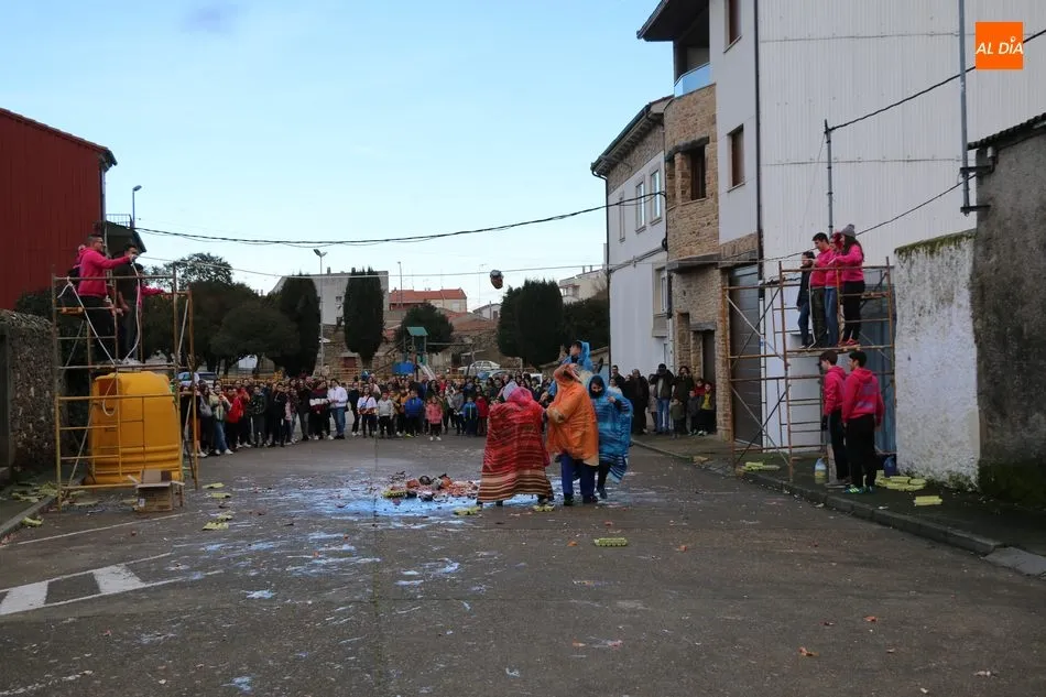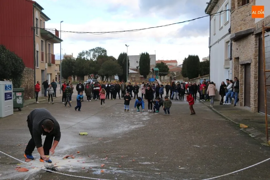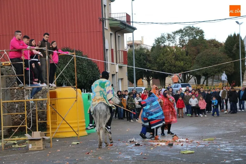 Solo una de las cántaras logró el disfrute de los más pequeños con caramelos, que de esta forma se acercaban al ?campo de batalla?, con huevos por misiles, para hacer acopio de la golosina.