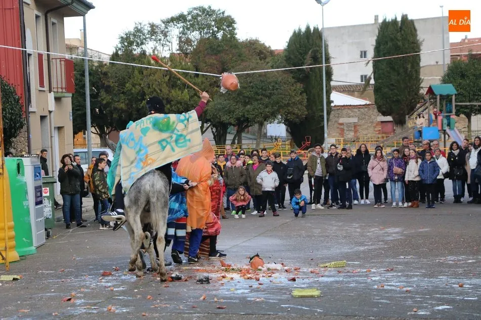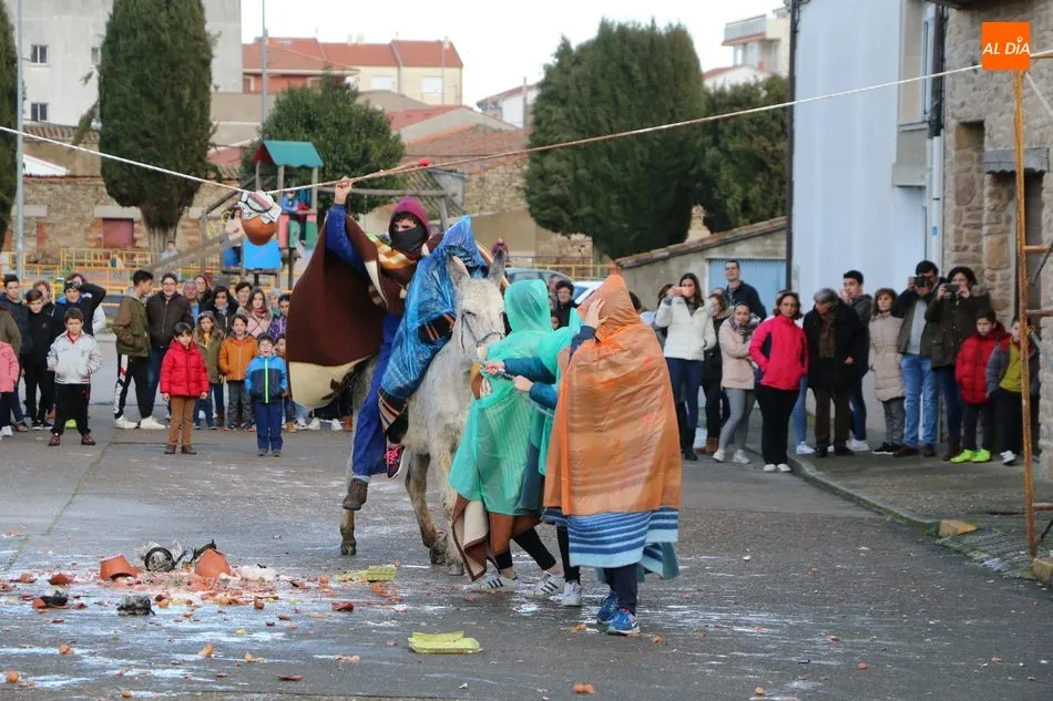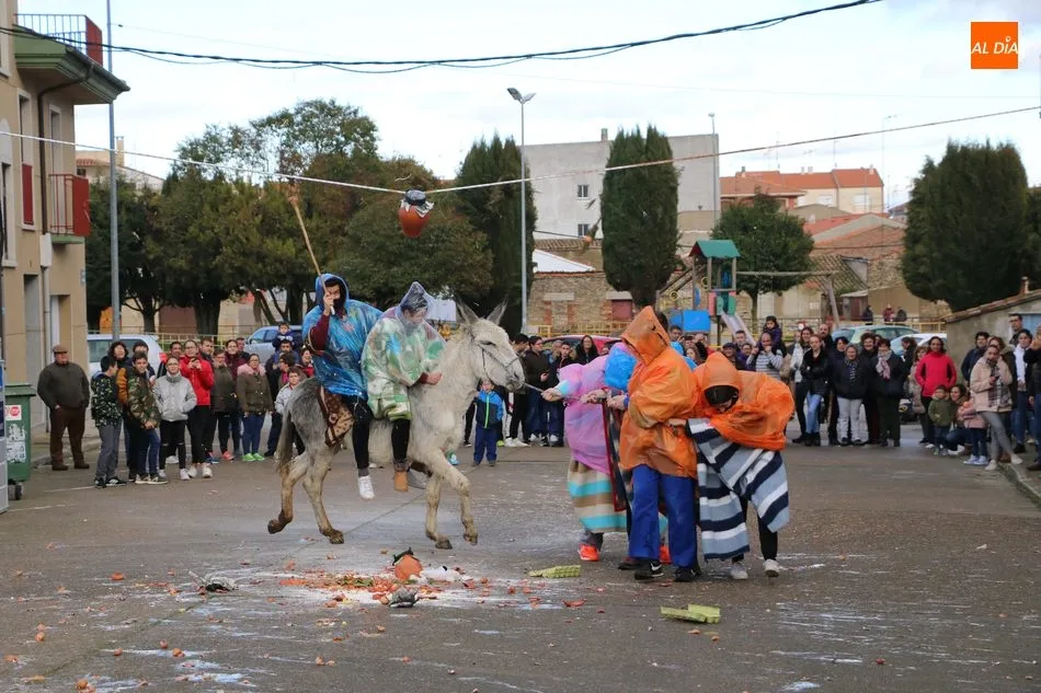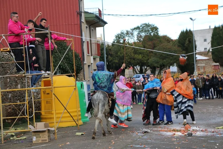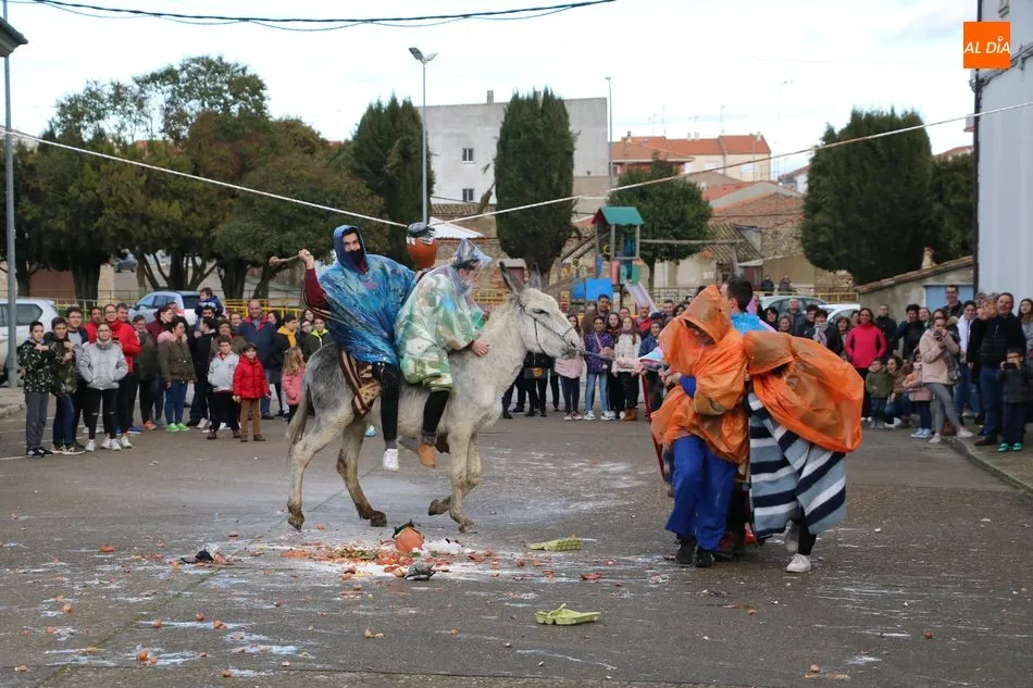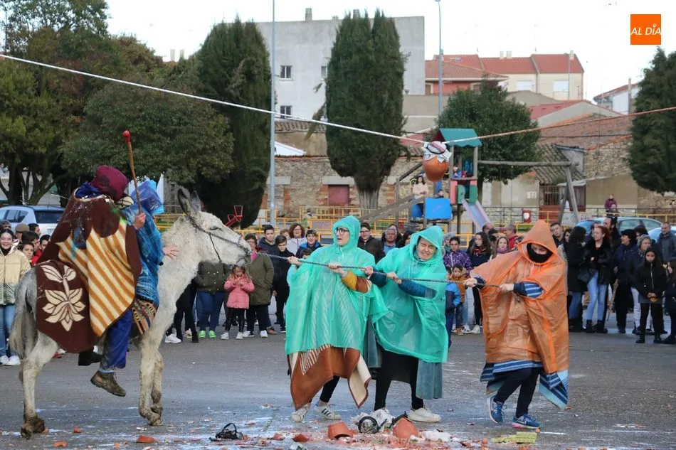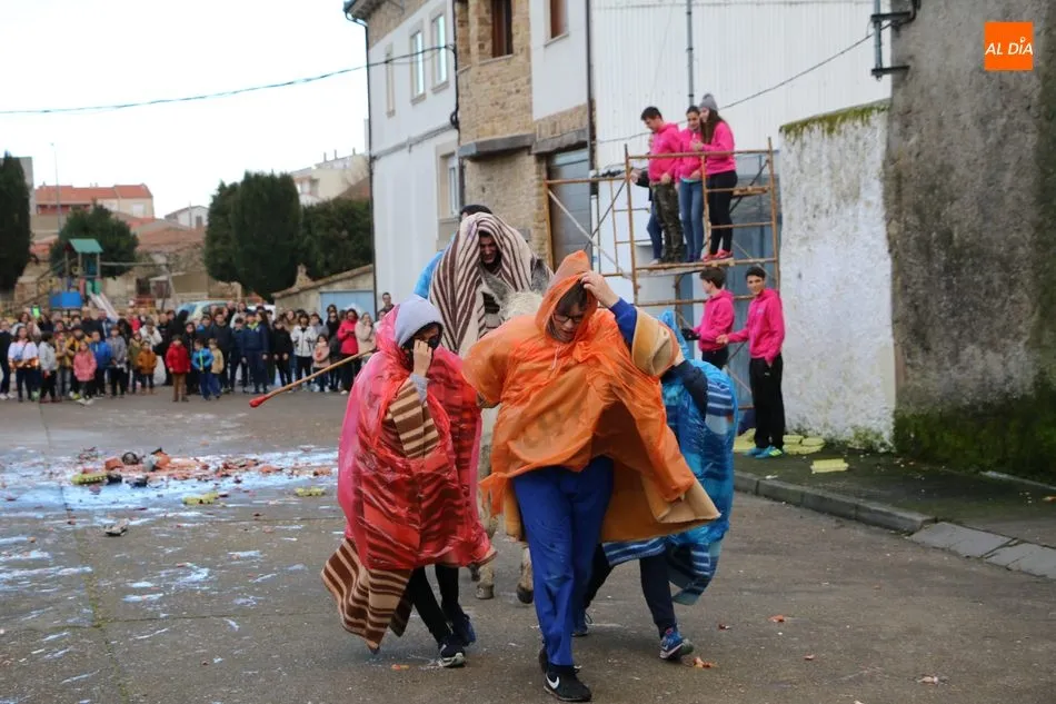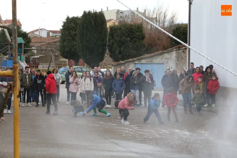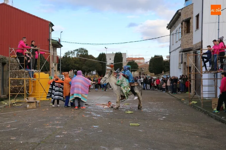 Solo una de las cántaras logró el disfrute de los más pequeños con caramelos, que de esta forma se acercaban al ?campo de batalla?, con huevos por misiles, para hacer acopio de la golosina.