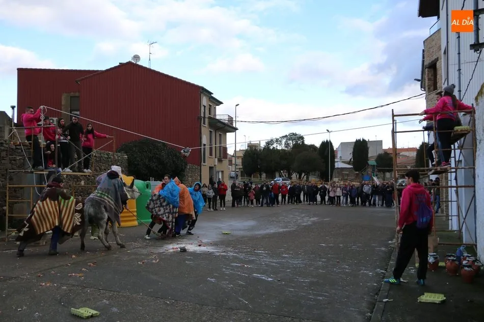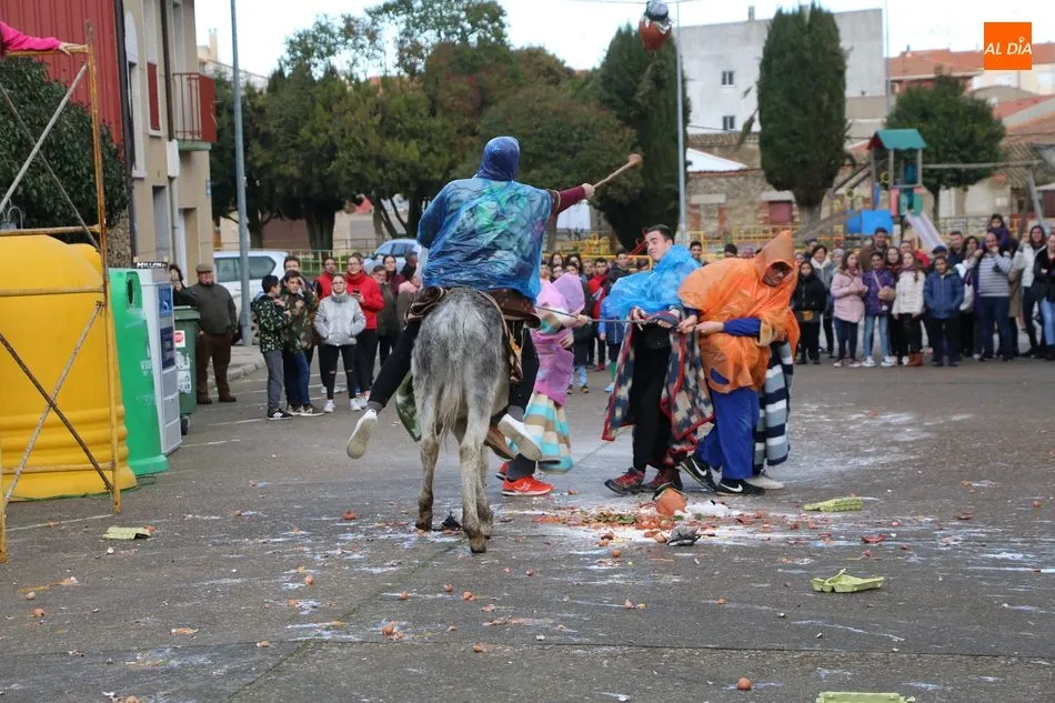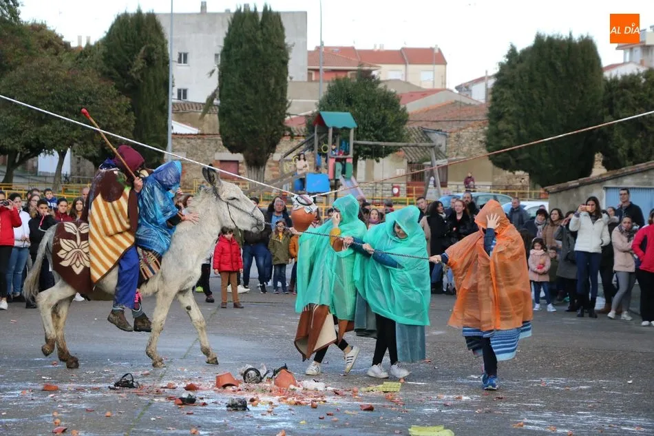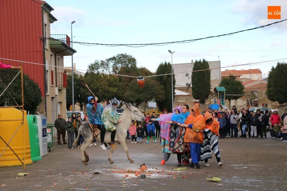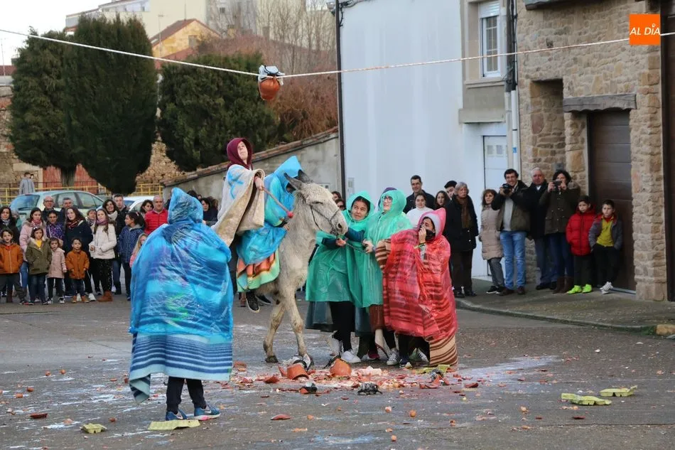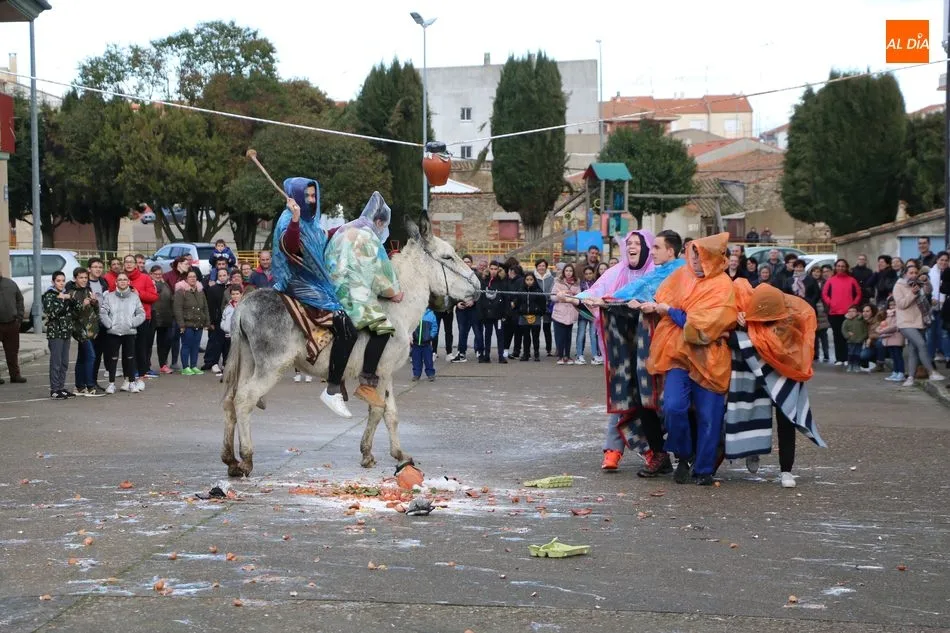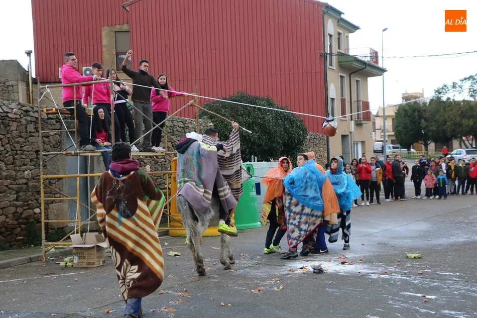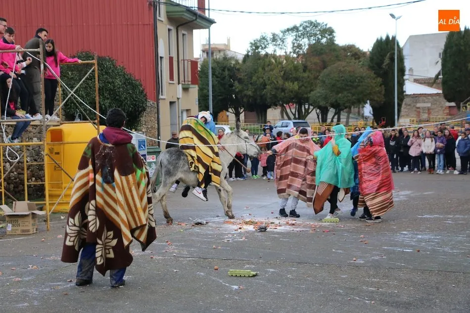 Solo una de las cántaras logró el disfrute de los más pequeños con caramelos, que de esta forma se acercaban al ?campo de batalla?, con huevos por misiles, para hacer acopio de la golosina.