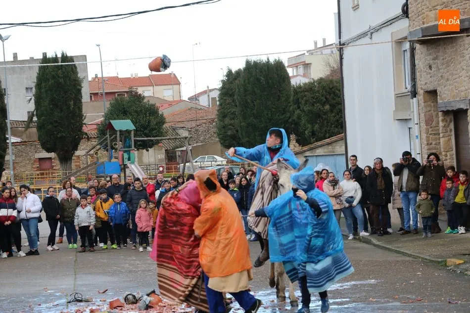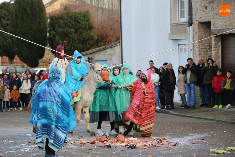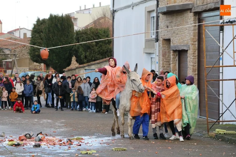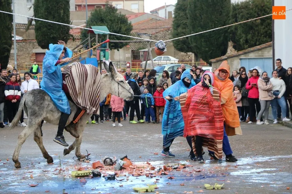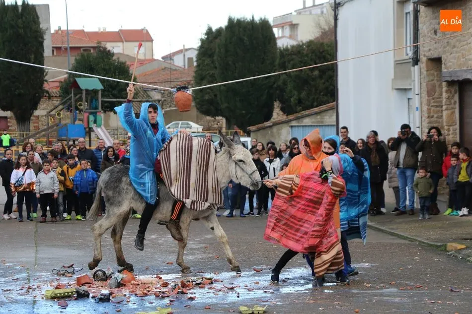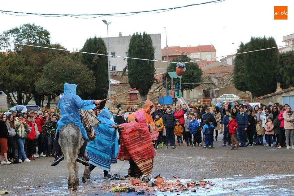 Después de una larga noche, a media mañana hacían acto de presencia en las Cuatro Calles con el intento de recaudar algo para la fiesta, para seguir con la comida y la rotura de cántaras con Jaimito, que se resistía al principio a pasar por debajo de la cuerda y la cántara llena de algunas lindezas.