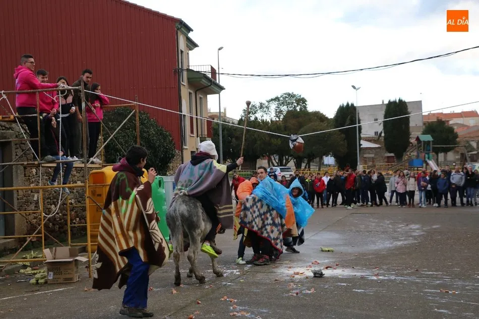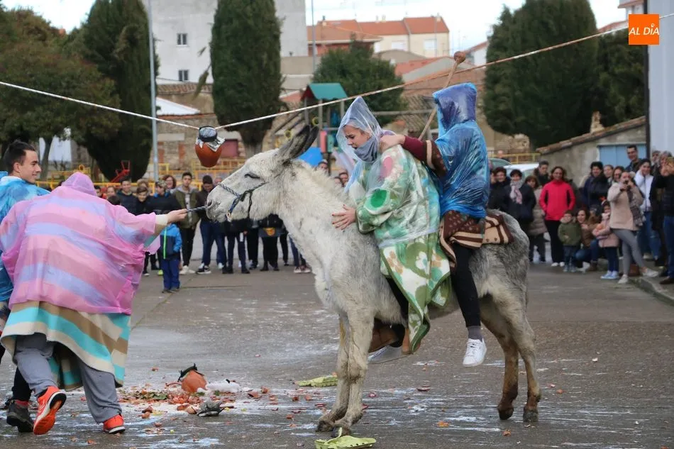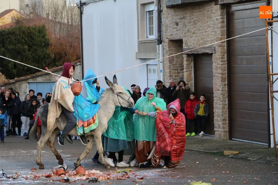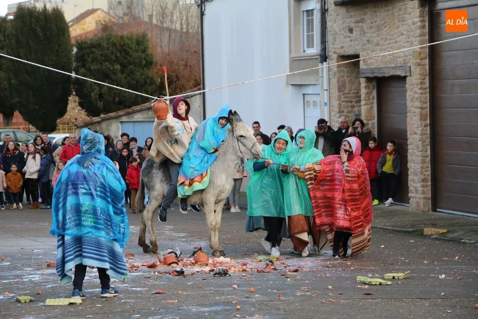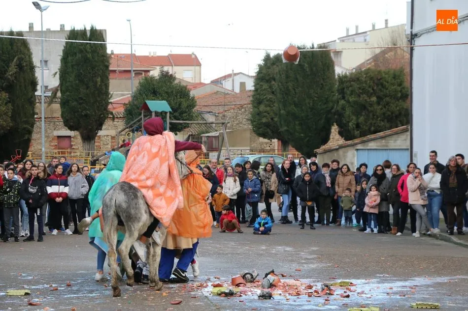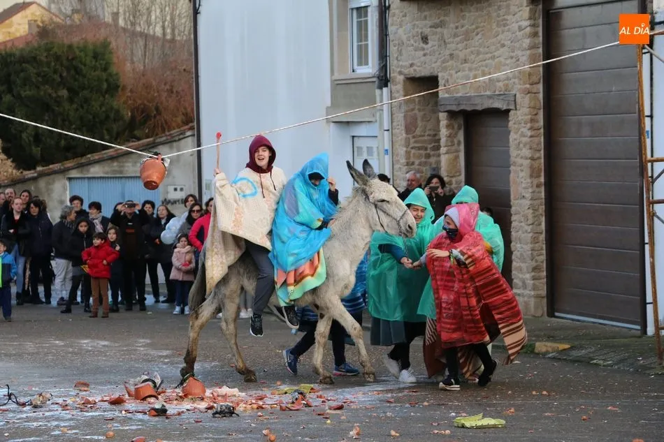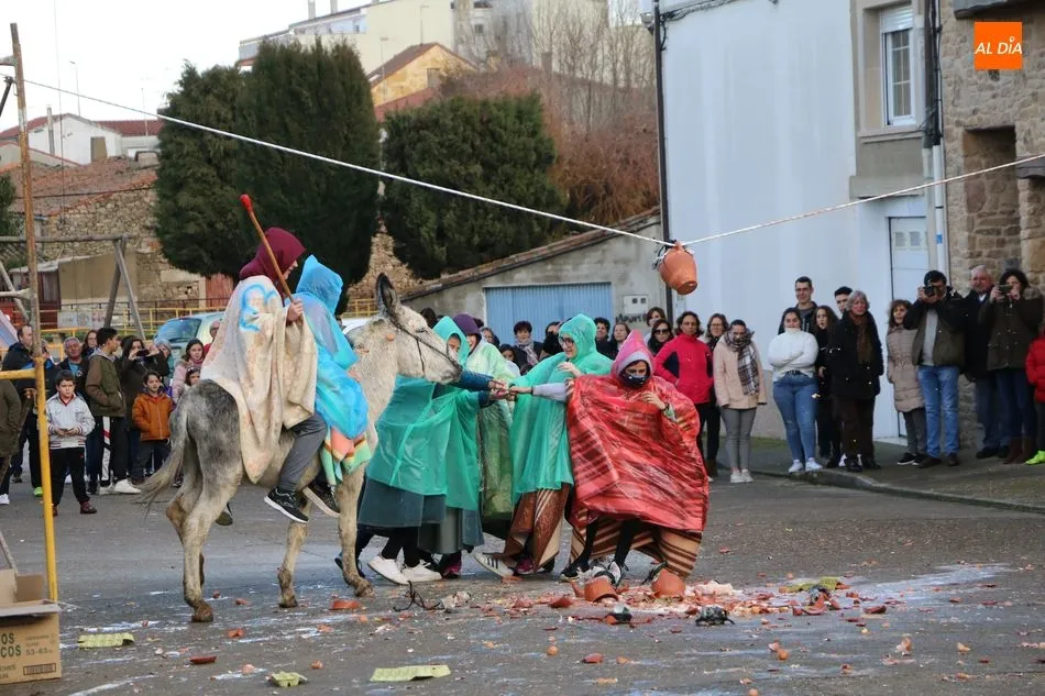 Después de una larga noche, a media mañana hacían acto de presencia en las Cuatro Calles con el intento de recaudar algo para la fiesta, para seguir con la comida y la rotura de cántaras con Jaimito, que se resistía al principio a pasar por debajo de la cuerda y la cántara llena de algunas lindezas.