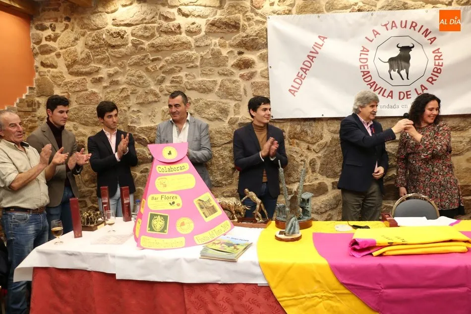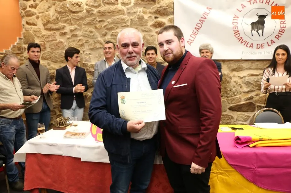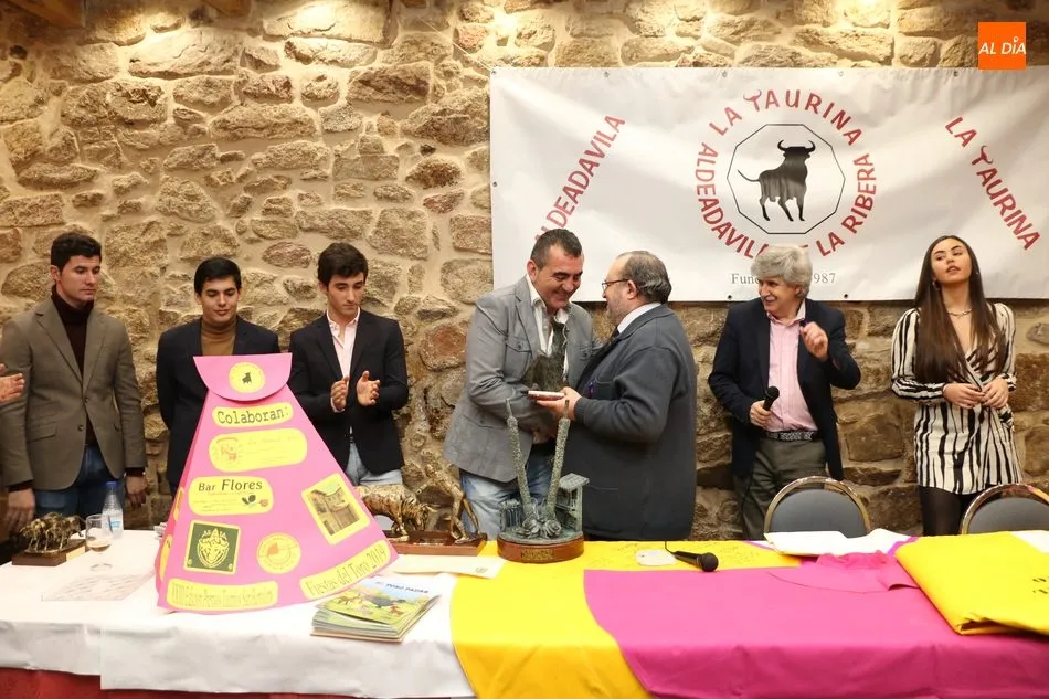 La Peña La Taurina, de Aldeadávila de la Ribera, hizo entrega este sábado sus tradicionales Premios Taurinos ?Fiestas del Toro? de Aldeadávila de la Ribera, una edición un tanto especial esta la del 2019 por llegar a su vigésimo tercera edición con infinidad de seguidores, como lo demostraba el lleno del salón del Restaurante El Paraíso en el que se desarrollaba la entrega de galardones conducida por el presidente de La Taurina, Luis Fraile, quien señaló la consolidación de este certamen sobre la feria de referencia en cuanto a festejos sin caballos.