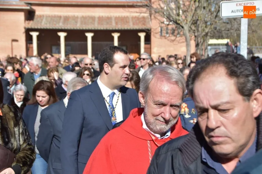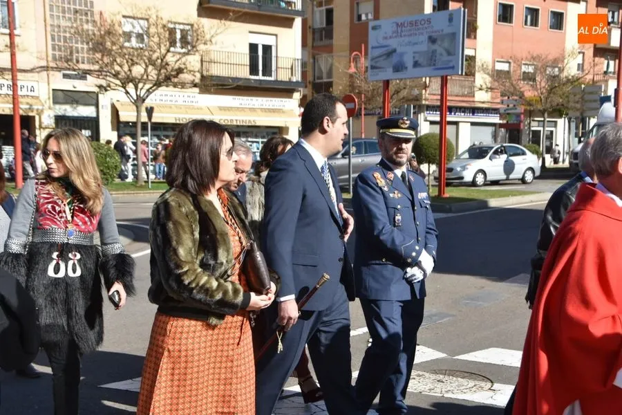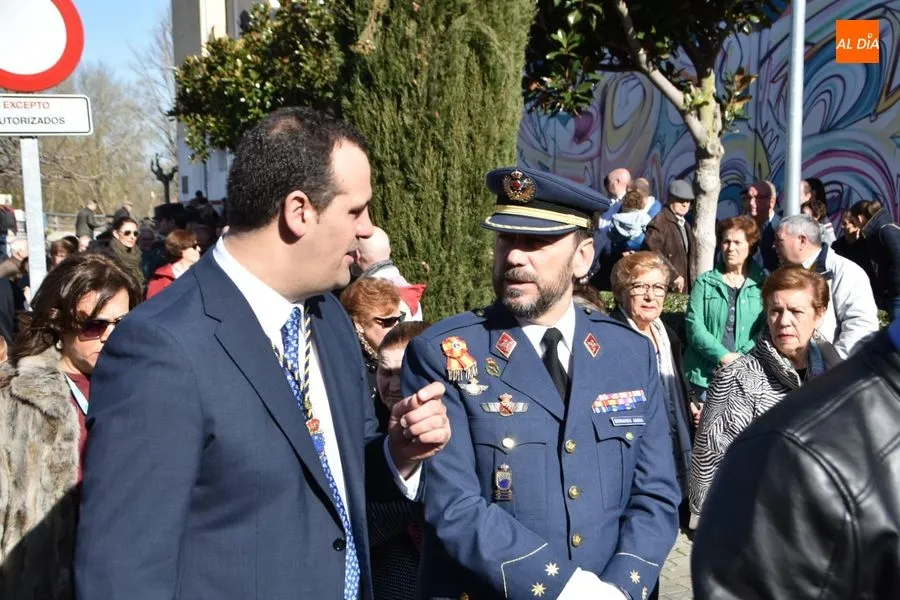 Antes de los actos religiosos, en el salón de plenos del Ayuntamiento, tenía lugar el pregón institucional que corrió a cargo coronel jefe del Grupo de Escuelas de la Base Aérea de Matacán, Carlos María Bernardo Anaya. Un acto al que acudían, entre otras autoridades, la subdelegada del Gobierno, Encarnación Pérez, y el propio alcalde, David Mingo.