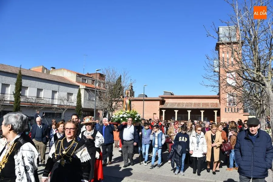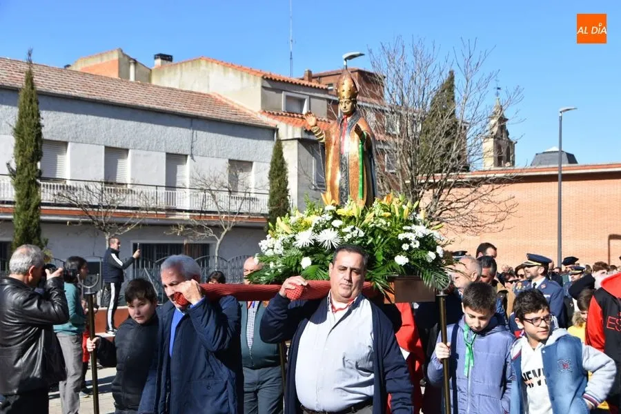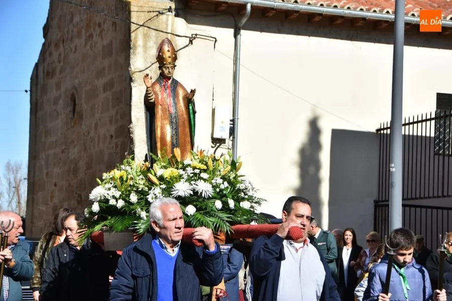 Santa Marta de Tormes celebró esta mañana el día grande de las fiestas en honor a San Blas con una eucaristía y la posterior procesión de su imagen por las calles de la localidad salmantina. La procesión discurrió por la plaza de la Iglesia, Avenida Madrid, calle Don Ricardo Marcos, calle Enrique de Sena, Avenida Virgen de las Nieves, Avenida Madrid y plaza de la Iglesia.