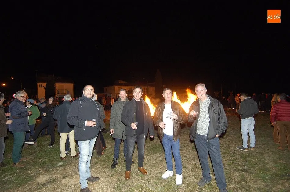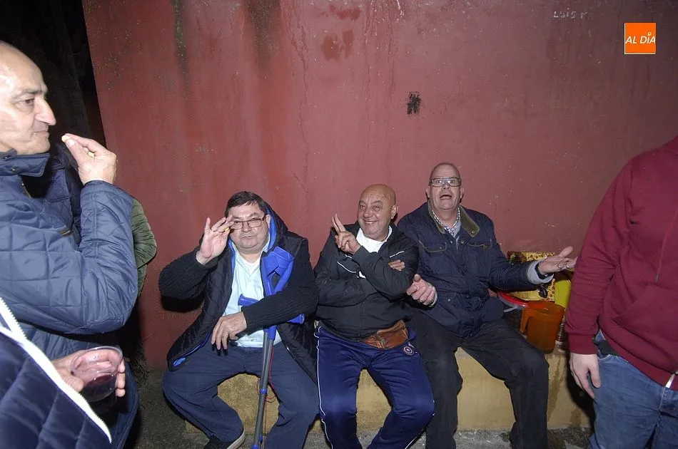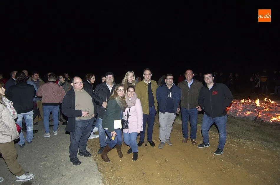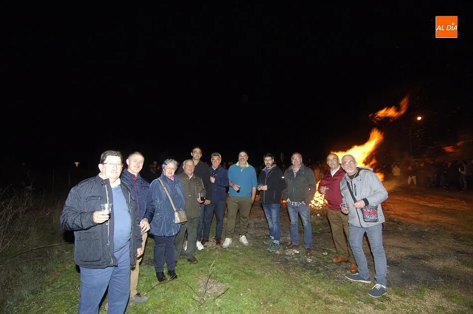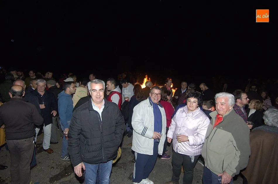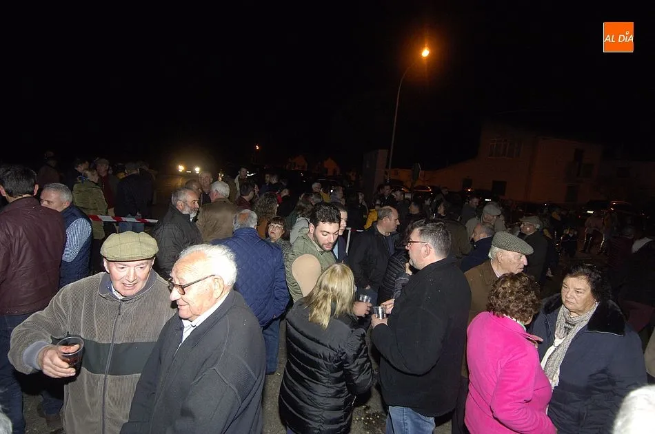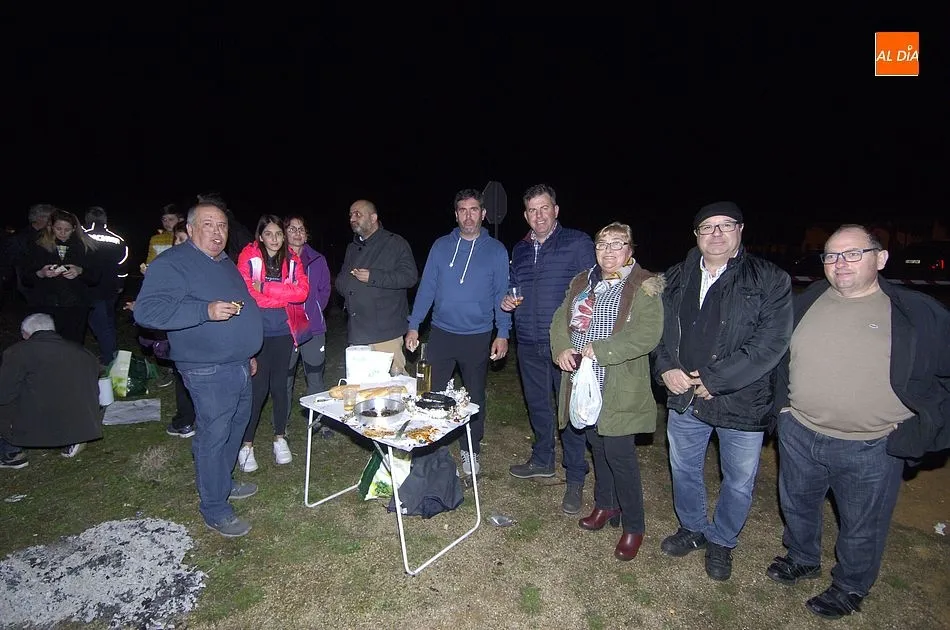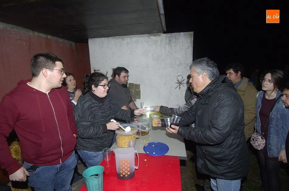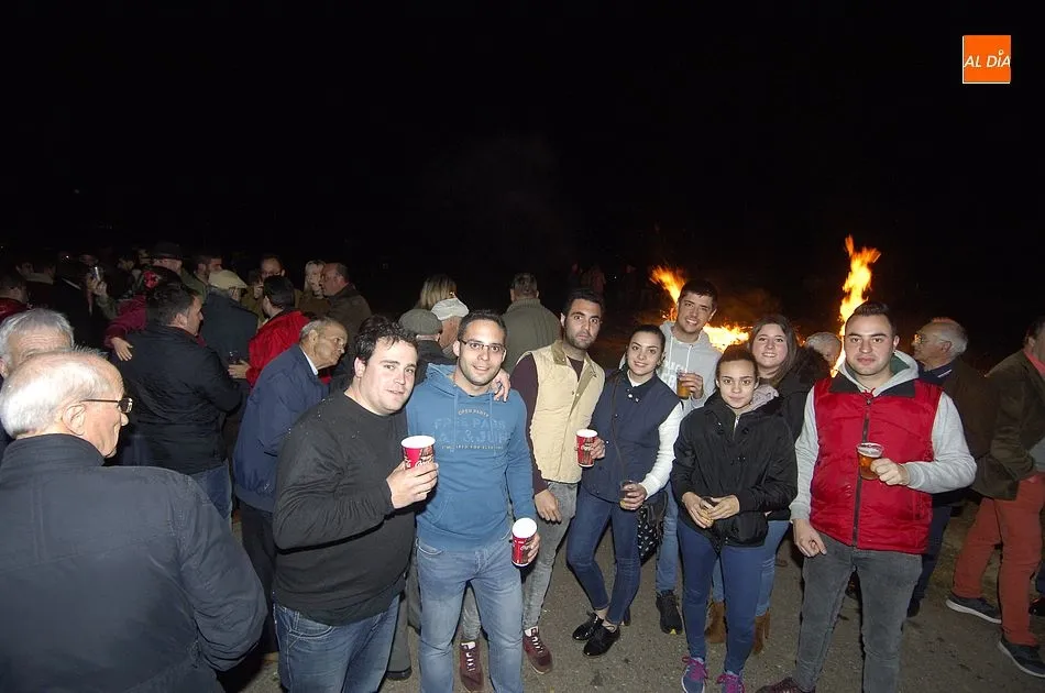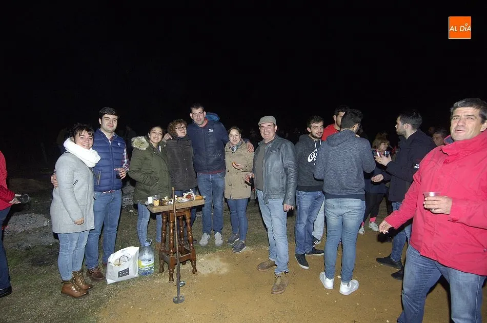 Tras consumirse la leña y quedar las brasas, con una pala los asistentes se preparaban sus mini hogueras alrededor de la principal, para utilizarla de brasero y a la vez para asar los víveres que cada uno había llevado, por lo general, chorizos, morcillas, panceta? todo acompañado de buenos vinos de la tierra, excepto para los conductores, que existe un agua exquisita también proveniente de esta maravillosa tierra.