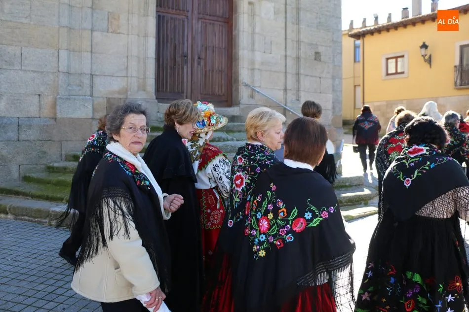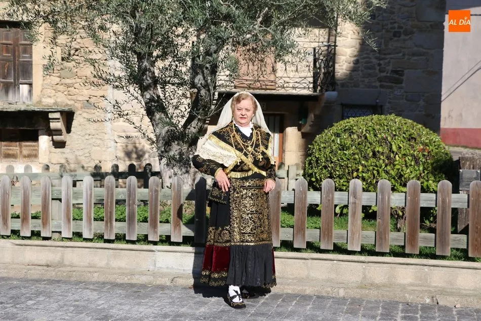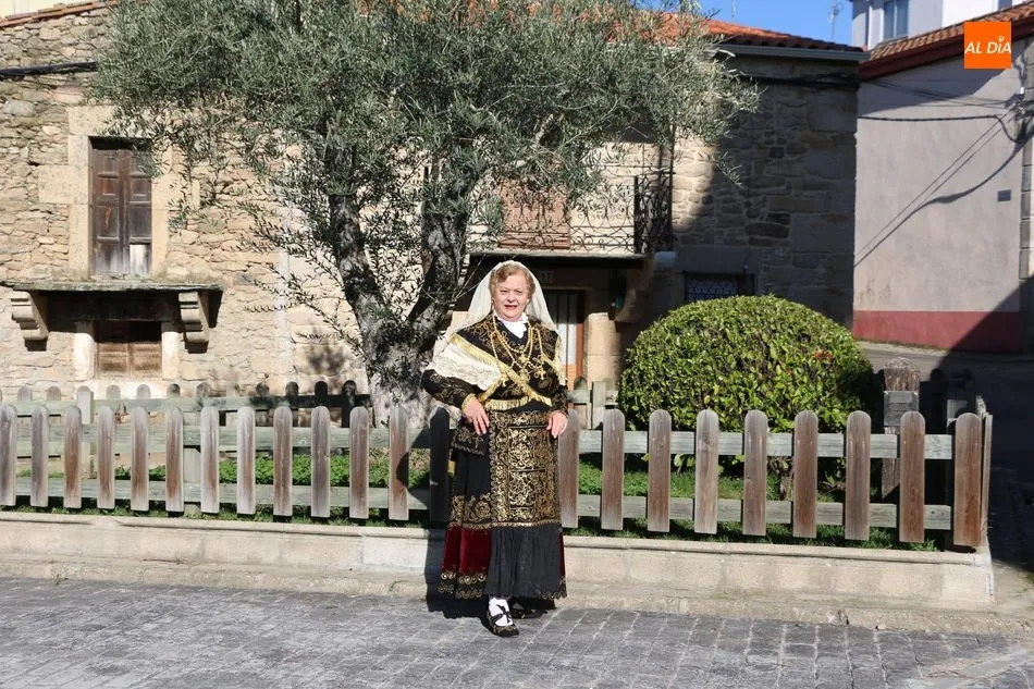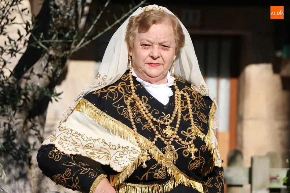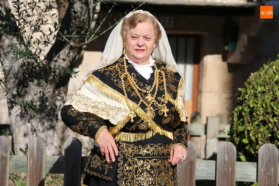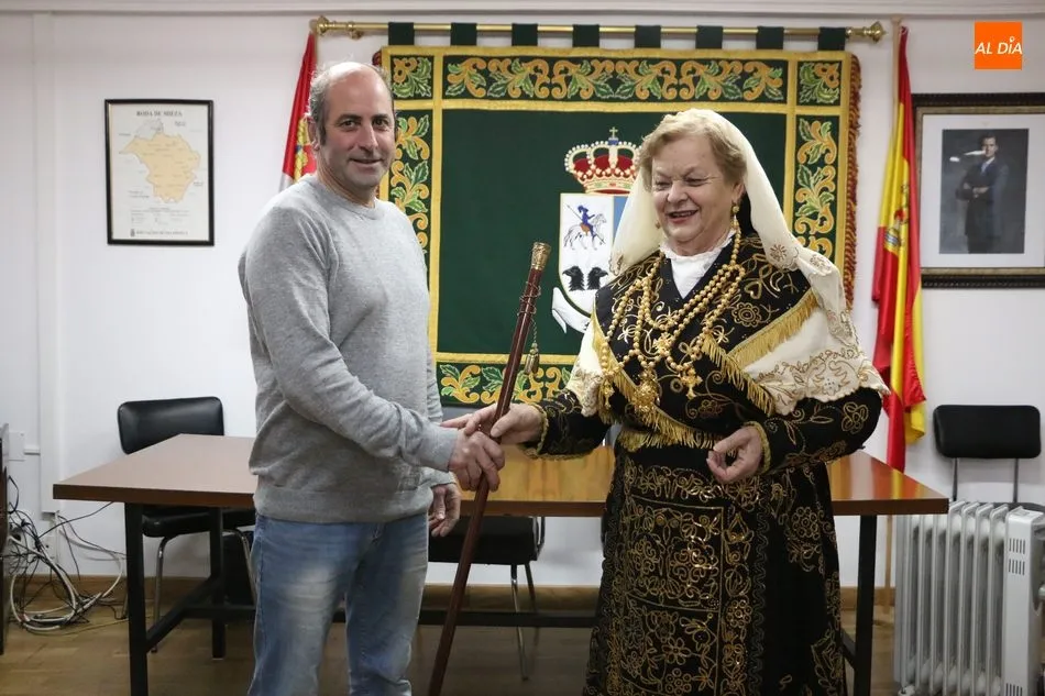 Rosa Hernández recibía este miércoles 5 de enero, día de San Águeda, el bastón municipal de Mieza de la Ribera de manos del alcalde de la localidad, Ismael García, un acto en el que la aguedesa mayor lucía un precioso vestido de charra negro con bordados en oro.