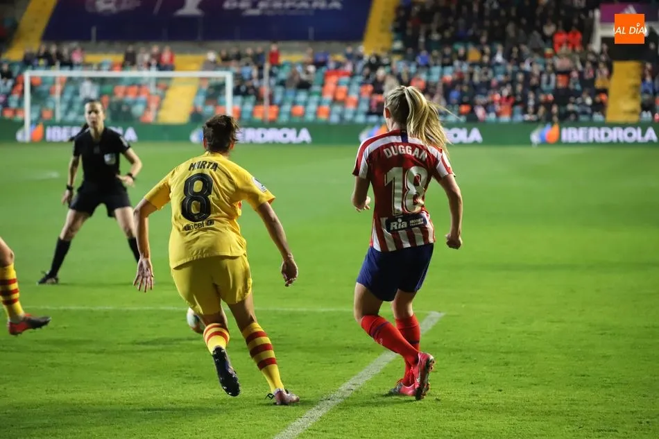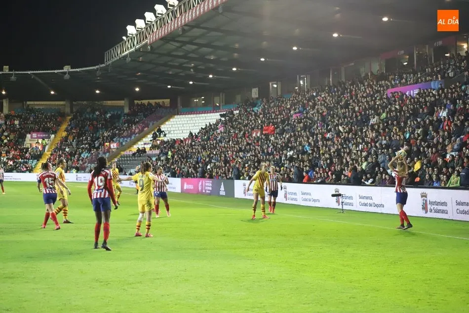 El Barcelona se impuso al Atlético de Madrid en la segunda semifinal de la Supercopa Femenina de España (2-3), por lo que ambos equipos dieron un recital sobre el tapete verde del Helmántico y el público charro disfrutó con un espectáculo de máximo nivel con 7.077 espectadores en las gradas.