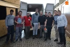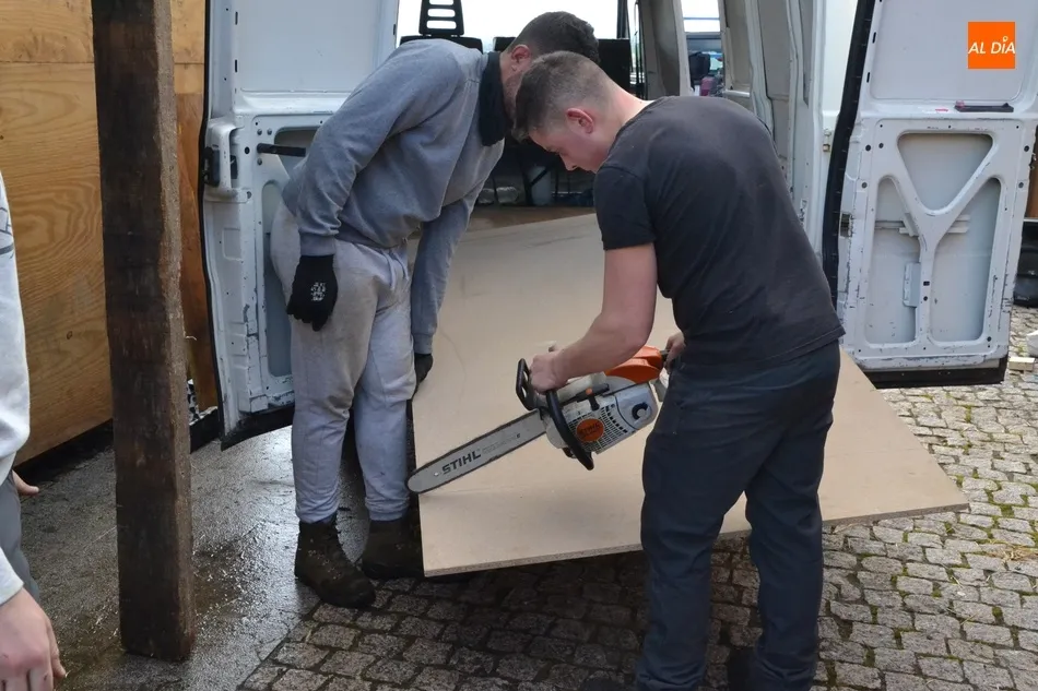 Según ellos mismos relataban a última hora de la mañana, habían iniciado los trabajos de montaje incluso antes de amanecer, a las 6 de la mañana, desarrollando una laboriosa tarea que ya tenían muy avanzada cerca de la hora de comer. Evidentemente, para poder llevar a cabo este montaje fue preciso llevar numerosos materiales, con lo cual el lugar estaba poblado de vehículos.