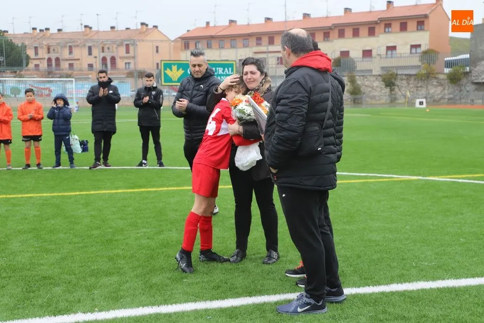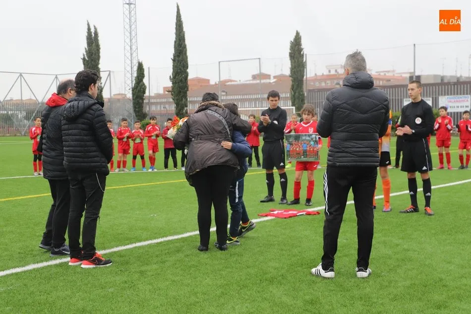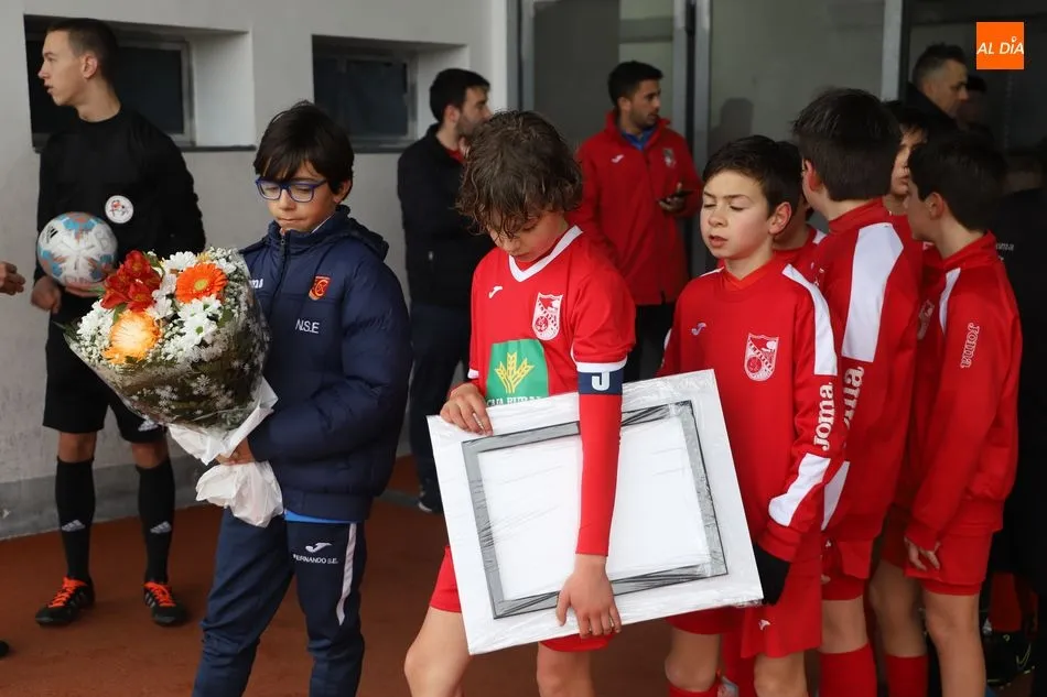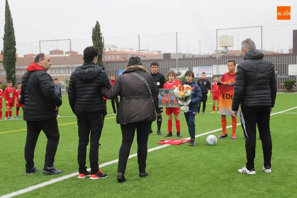 Emotivo gesto el que se ha vivido hoy en el Vicente del Bosque, ya que en los prolegómenos del encuentro del equipo del Navega en el que jugaba Edu, el pequeño fallecido de forma reciente, contra el Carbajosa se hizo entrega a los padres de un bonito recuerdo.