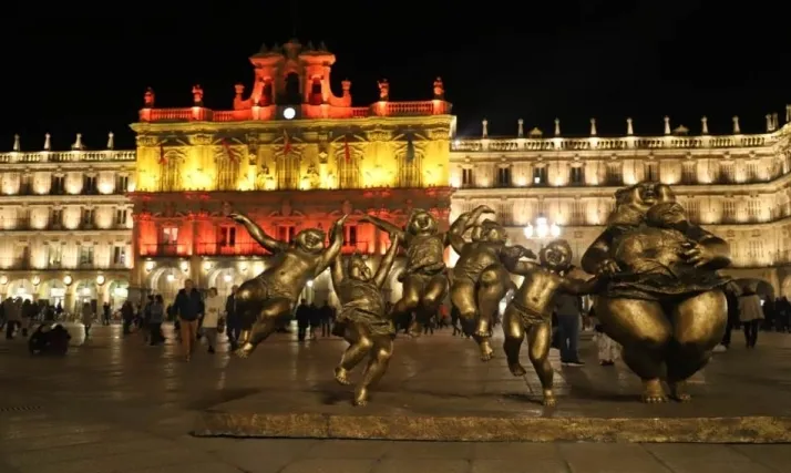 fachada del ayuntamiento iluminada con los colores de la bandera de españa, con motivo de la final de la supercopa femenina