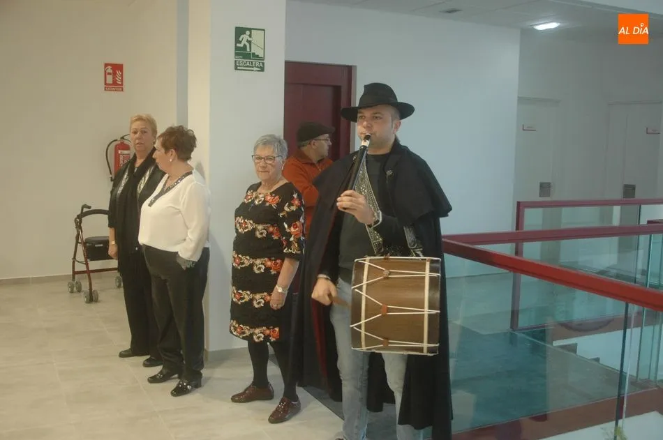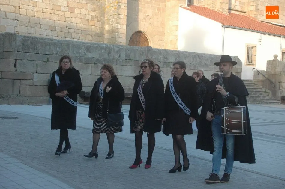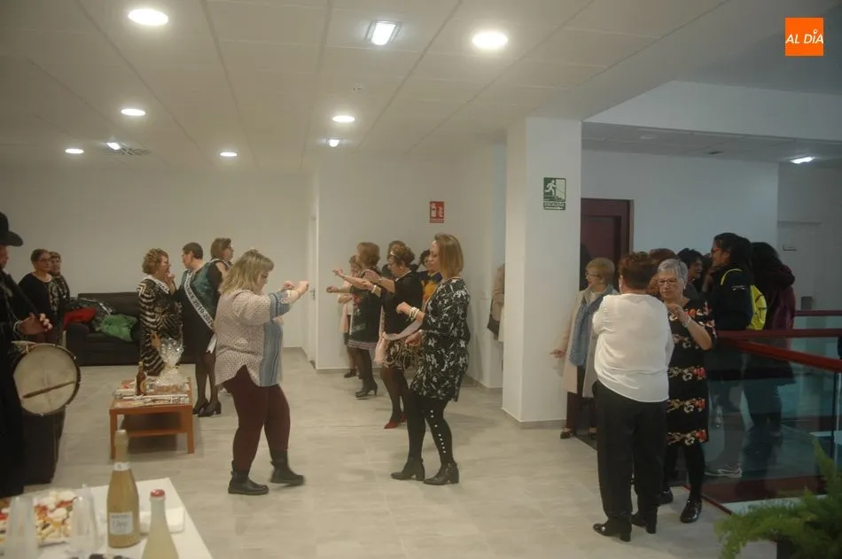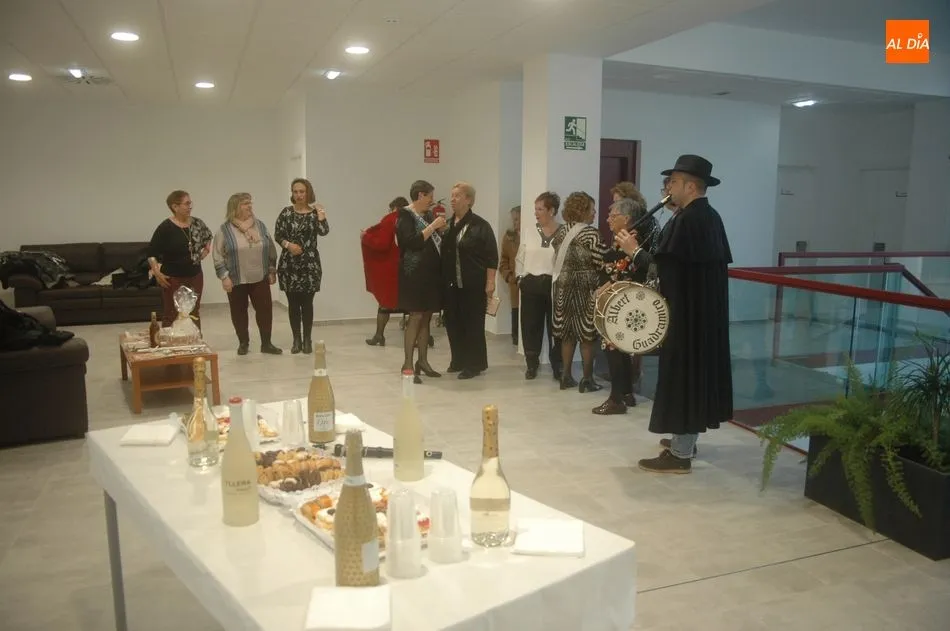Tras finalizar el acto, águedas y acompañantes, además de autoridades municipales, brindaban por esta celebración con cava y tomaban unos dulces al son del tamboril de Albert Calderón de Guadramiro, antes de dirigirse a la iglesia para asistir a misa.