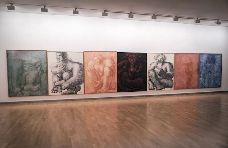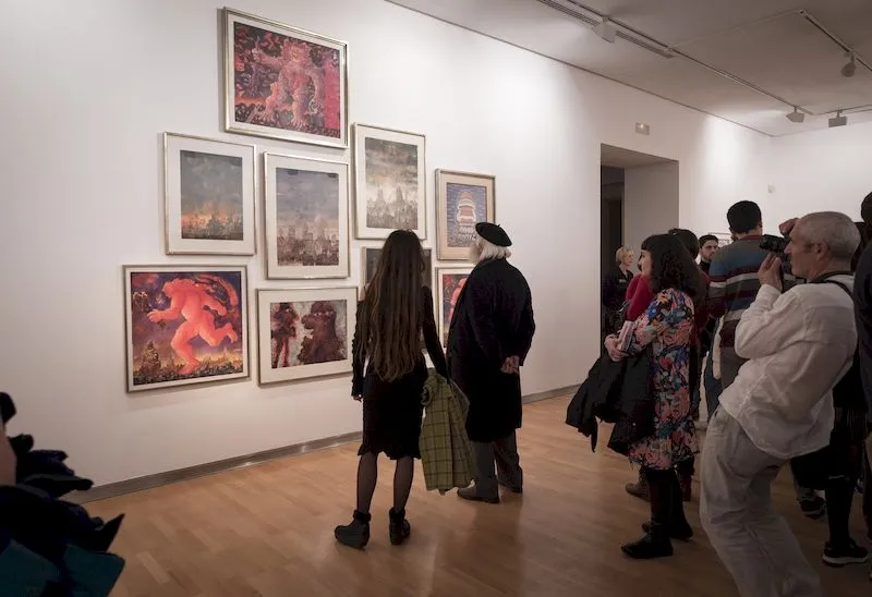 Una muestra que se inicia con el particular génesis del autor. Un autor al que es un placer escuchar hablar no solo de pintura y que inicia el trayecto desde la aventura maravillosa del nacimiento, la sopa primigenia que en el mar arranca la vida, esa vida que los hombres hemos destruido. La muestra se lee pues desde una perspectiva cronológica: a la génesis explosiva de la microbiología, le siguen las grandes civilizaciones. Sin embargo, para Tapia, el hombre con su ambición y codicia destruye el mundo natural, y surgen las torres, los árboles de Babel que confundieron las lenguas. A la destrucción del mundo tal y como lo conocemos, le sigue la llegada de los ogros, que habitan en la sala guardada por los perros Cancerberos, ogros que quizás desprecian el mundo de los humanos y que desean iniciar una nueva fase? esa fase que deje atrás las esferas sulfurosas, los incendios que vio Tapia con su capacidad de visionario. Una nueva fase que acaba en la sala dedicada a la Elevación, desde la que se levanta esa esperanza cierta en un mundo renacido.